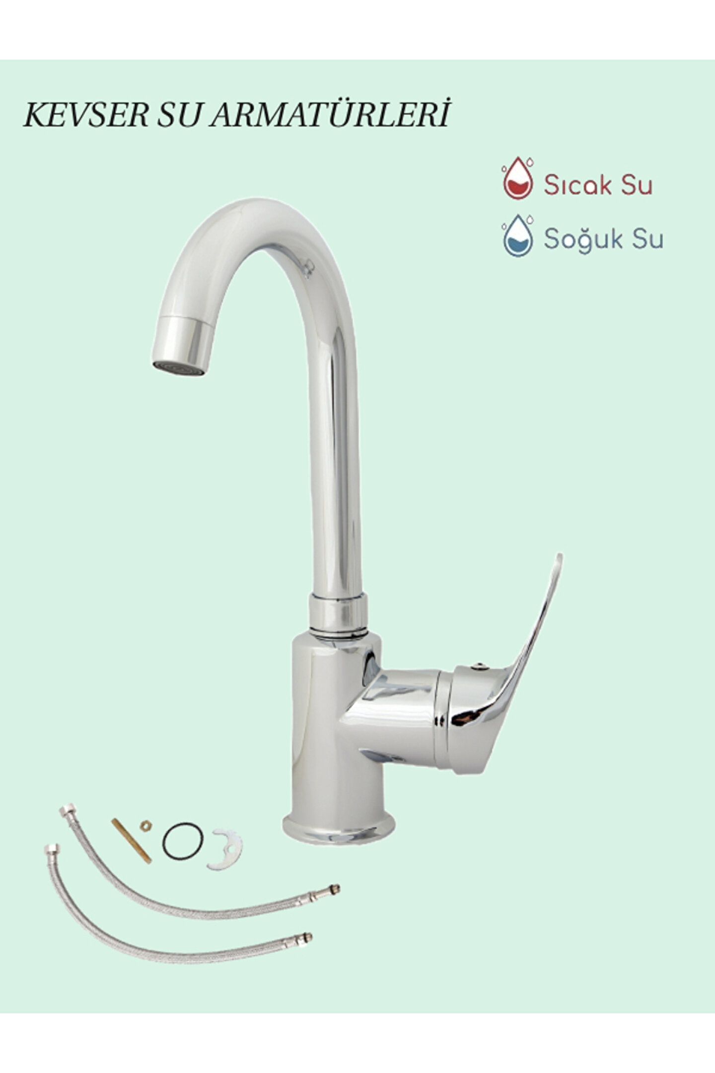 - Döner borulu tasarımı sayesinde mutfakta veya lavaboda rahatça kullanım imkanı sunar.; - 2 yıl garanti süresi ile güvenilir bir kullanım deneyimi sağlar.; - Tehlikeli madde içermediği için evinizdeki herhangi bir ortamda gönül rahatlığıyla kullanılabilir.; - Hamit Korkmaz tarafından ithal edilmiş olup, yetkili temsilci ve ifa hizmet sağlayıcı olarak desteklenmektedir.; - Yüksek kaliteli pirinç materyaliyle dayanıklılık ve şık görünümü bir arada sunar.; - Krom rengiyle modern ve estetik bir tasarıma sahiptir; mutfak dekorasyonunuza kolayca uyum sağlar.; - 0 - 5 cm genişliği, 15 - 20 cm yüksekliği ve aç-kapa mekanizması ile pratik kullanım sunarken, 0 - 10 cm derinliği ve çıkış ucunun uzunluğu konforlu bir deneyim vaat eder.; - Spiral durumu bulunmayan bu batarya, basit ve stabil bir yapıya sahiptir.; - Türkiye menşeli olmasıyla yerel üretim avantajlarından faydalanmanızı sağlar.; - Kevser Su Armatürleri tarafından üretilmiş olup, kalite standartlarına uygunluk gösterir.; - 80 derece üzeri çalışma sıcaklığına dayanıklılığı sayesinde zorlu koşullarda bile performansını korur.; - Ürün görselinde yer alan CE uygunluk sembolü, güvenlik standartlarına uygun olduğunu belirtirken; tek ebat seçeneğiyle standart boyutlarda her türlü mutfak veya banyo düzenine uyum sağlar.
