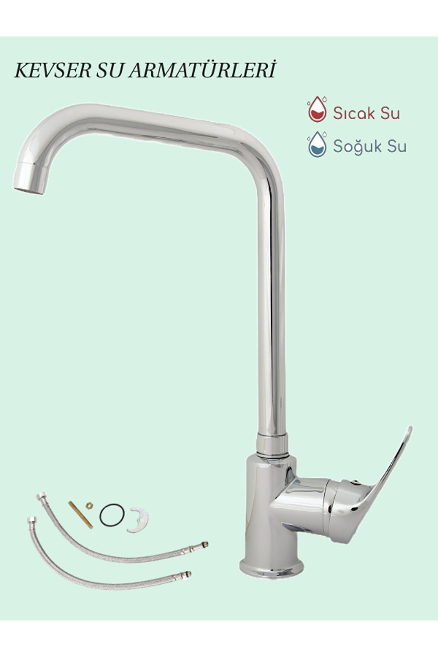 - Döner borulu tasarımı sayesinde mutfakta hareket özgürlüğü sağlar ve geniş alanlarda kullanım kolaylığı sunar.; - 0 - 10 cm arasında ayarlanabilir çıkış ucunun uzunluğu ile farklı ihtiyaçlara uygun esneklikte su akışı imkanı tanır.; - Krom rengiyle modern ve şık bir görünüm sergilerken, pirinç materyali dayanıklılığı artırır.; - 20 - 25 cm yüksekliği ile mutfak tezgahına rahatça monte edilebilir ve ergonomik kullanım sunar.; - Tehlikeli madde içermediği için güvenli bir kullanım vaat eder; herhangi bir risk faktörü bulunmaz.; - Spiralli yapısı bulunmadığından temizliği kolaydır ve bakımı pratiktir; böylece hijyen standartlarını korur.; - Kevser Su Armatürleri tarafından üretilmiş olup kalite güvencesiyle piyasaya sunulmuştur.; - 80 derece üzeri çalışma sıcaklığına dayanıklılığı sayesinde yüksek performans sergilerken uzun süreli kullanım için idealdir.; - Aç-kapa mekanizması ile suyu açıp kapatmak hızlı ve pratiktir; enerji tasarrufuna katkıda bulunur.; - Hamit Korkmaz tarafından ithal edilmiş olup Türkiye'de yetkili temsilci olarak hizmet verir; yerel destek ve garanti avantajlarından faydalanabilirsiniz.; - Derinlik ve genişlik ölçüleri standartlara uygun olarak belirlenmiştir; montaj esnasında sorun yaşamadan monte edilebilir.; - Tek ebat seçeneğiyle her mutfak düzenine uygunluk gösterir; standart boyutlarda geniş kullanım alanı sunar.