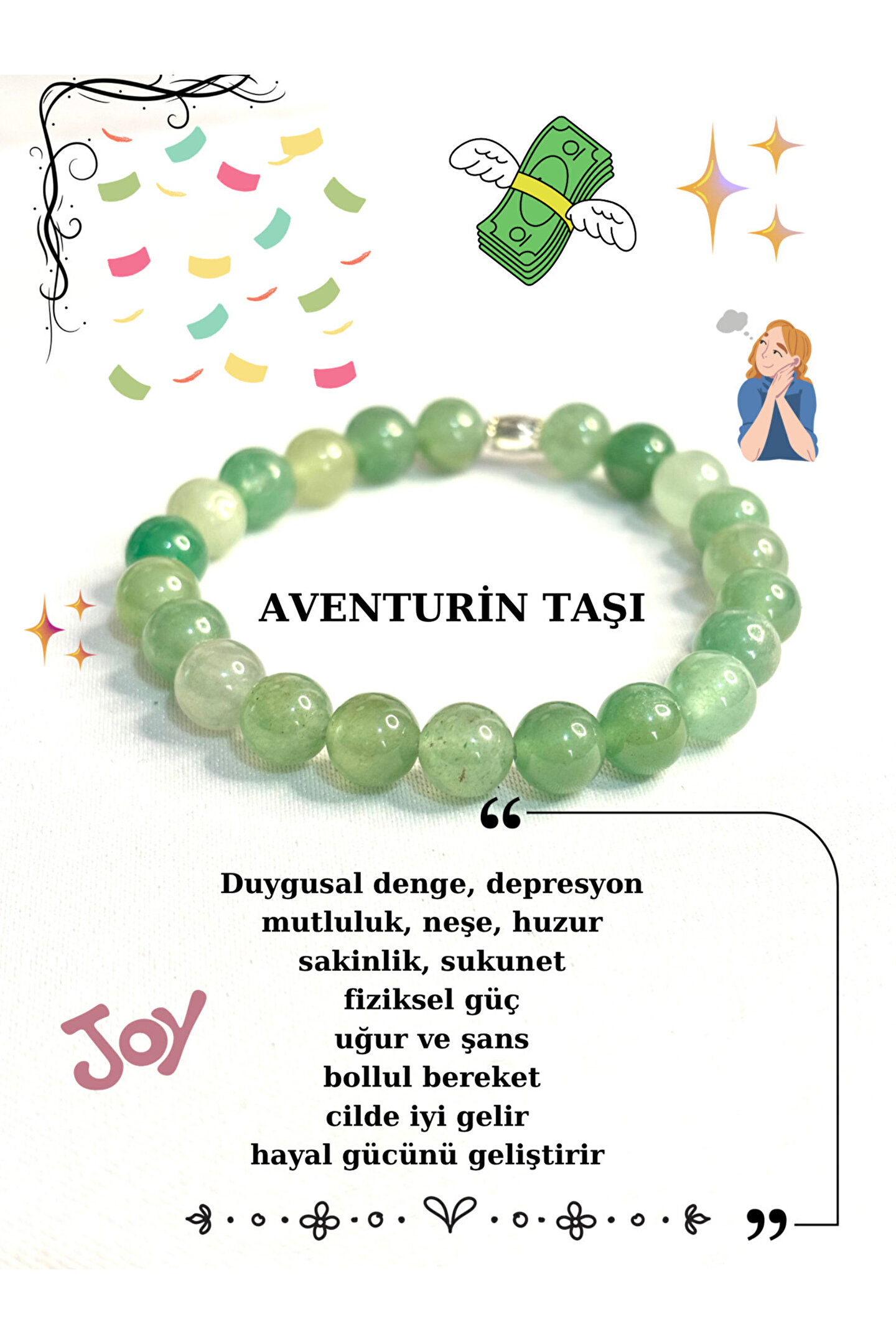 - Unisex tasarımı ile hem kadınların hem de erkeklerin kullanımına uygun, şıklığı ve rahatlığı bir arada sunan aventurin bileklik.; - Yetişkin yaş grubuna hitap eden zarif ve modern görünümüyle her türlü kıyafetle kolayca kombinlenebilir.; - Türkiye'de üretilmiş olup, kalite standartlarına uygun olarak tasarlanmış ve sertifikalandırılmıştır.; - Doğal aventurin taşı sayesinde benzersiz bir estetik sunarken, yeşil rengiyle göz alıcı bir etki yaratır.; - Doğal taş materyali ile hem dayanıklılığı artırılmış hem de estetik görünüm korunmuştur; uzun süreli kullanım için idealdir.; - U beden seçeneğiyle farklı bilek ölçülerine mükemmel uyum sağlayarak konforlu bir deneyim sunar.