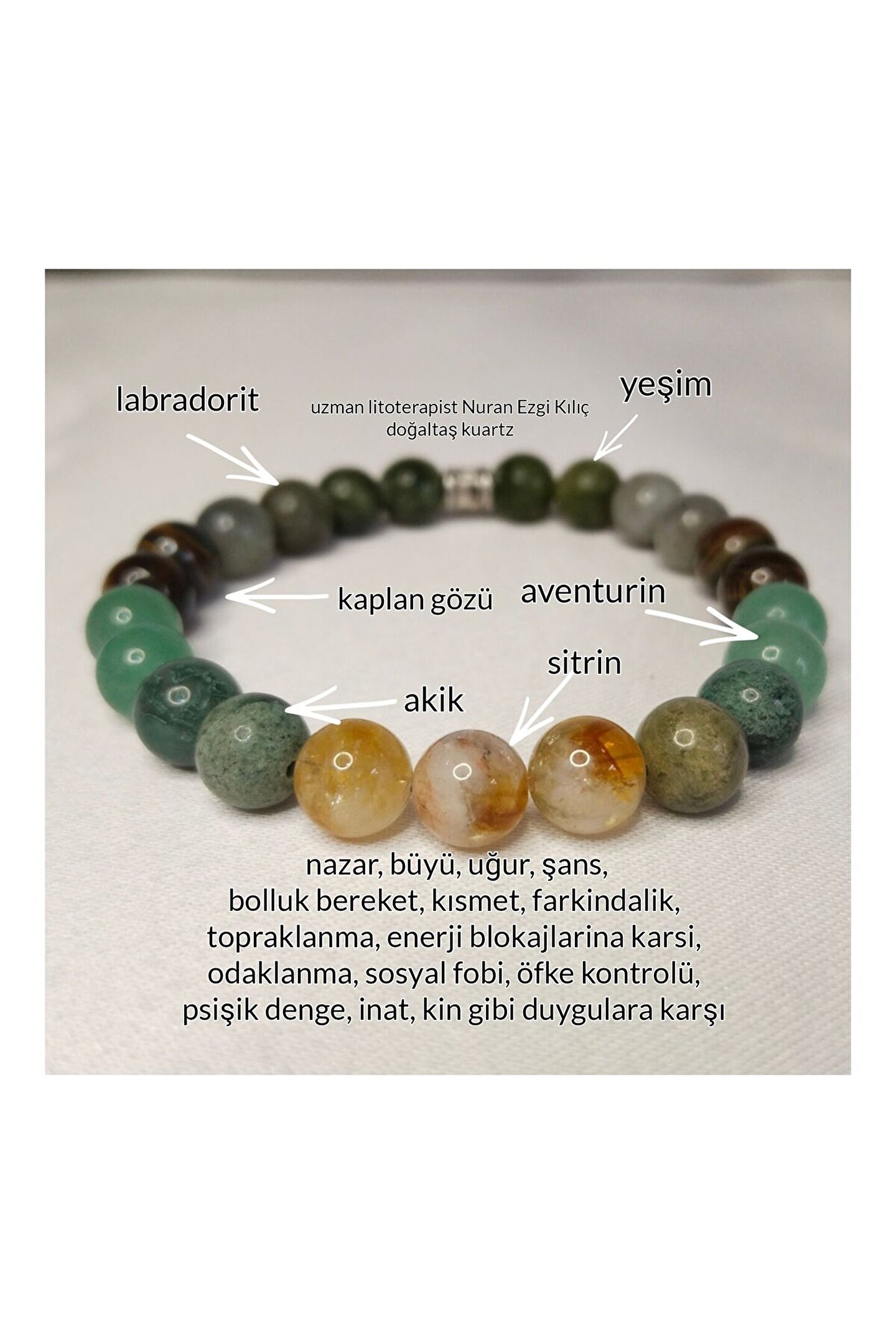 Doğal taş bileklik, her bir bileklikte bulunan benzersiz desen ve renklerle doğanın zarafetini ve güzelliğini parmaklarınıza taşır; Uzmanlar tarafından test edilmiş ve onaylanmış bu bileklik, kalite ve dayanıklılığı ile ön plana çıkar; Doğal taş materyali sayesinde, her bir bileklik farklı bir dokunuşla kişisel stilinizi yansıtır;