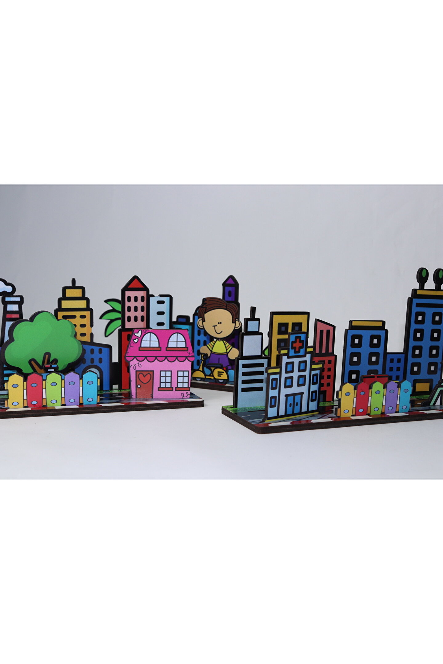 My City 24parça Ahşap Şehrini Kur Kutu Oyunu Geçmeli Puzzle Etkinlik Geliştirici Eğlenceli Set