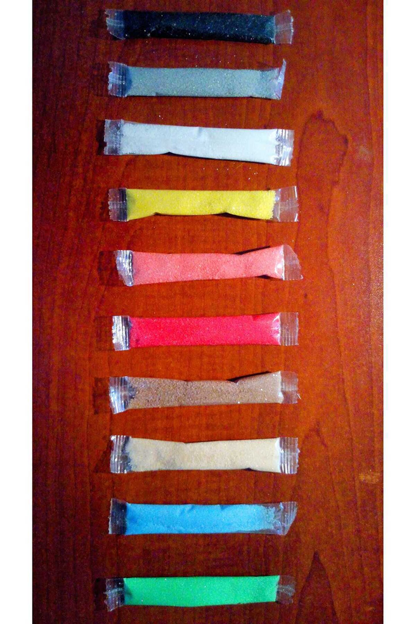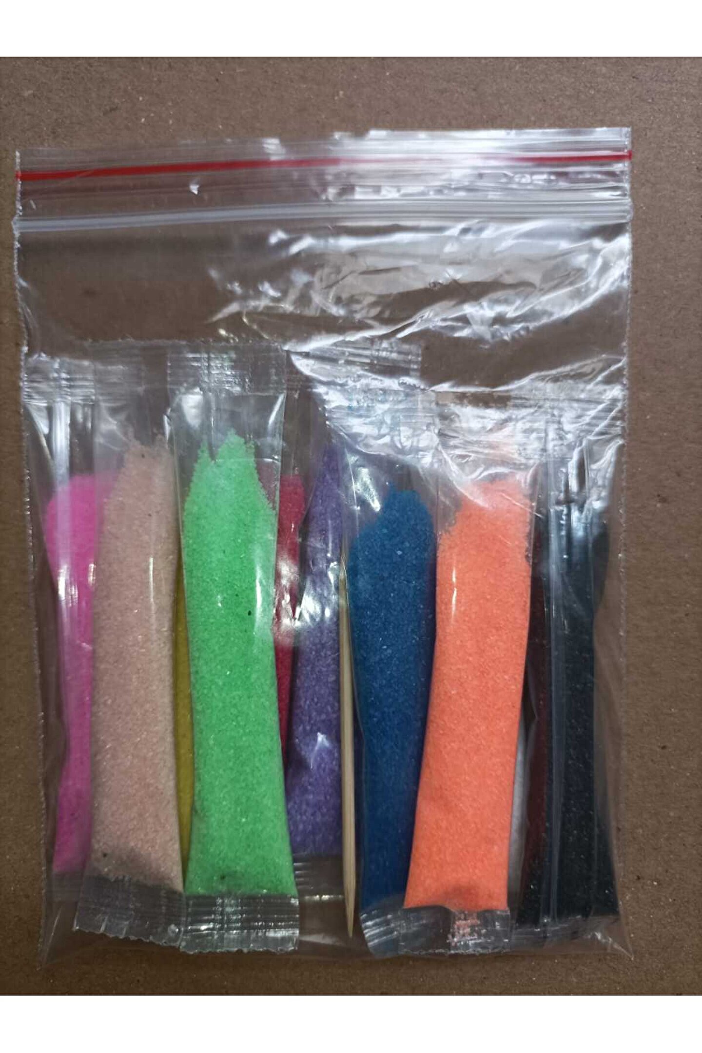 * 10 Adet ( renk ) şeffaf Stick Paketli Renkli Kum ( yaklaşık 7'şer gram ).