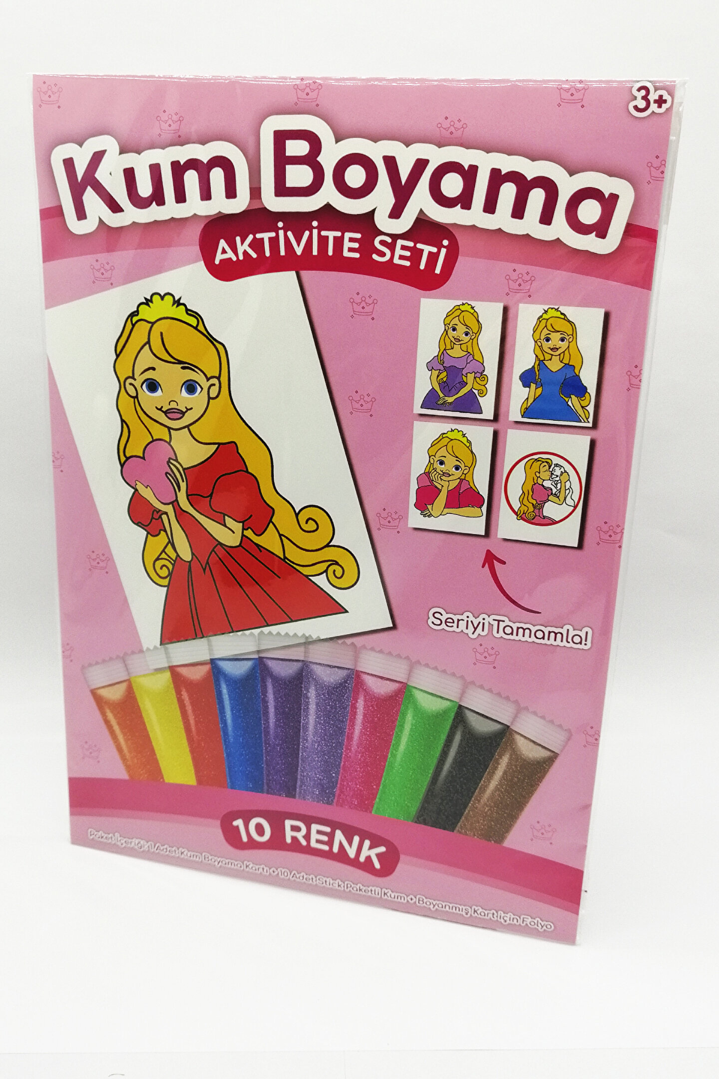 Kum Boyama : Kendinden yapışkanlı ve resimli kartların, renkli kumlarla boyama tekniğidir.; Kartın üzerindeki resim, bir şablon şeklinde, yarı kesik parçalar halindedir.; Sıra ile parçalar kaldırılarak, her kaldırma işleminden sonra renkli kum serpilmek suretiyle boyama yapılır ve tamamlanır.; 3 yaş üzeri uygundur.; Ürünümüz CE belgelidir.; Ayrıca, Avrupa Oyuncak Standartı EN-71,72,73 e uygundur.; Paket İçeriği : * 1 Adet Kum Boyama Kartı ( 23,5cm x 33,0cm, yaklaşık A4 ).; * 10 Adet ( renk ) şeffaf Stick Paketli Renkli Kum ( yaklaşık 7'şer gram ).; * 1 adet Boyanmış Kart için şeffaf Folyo.; * Kürdan.