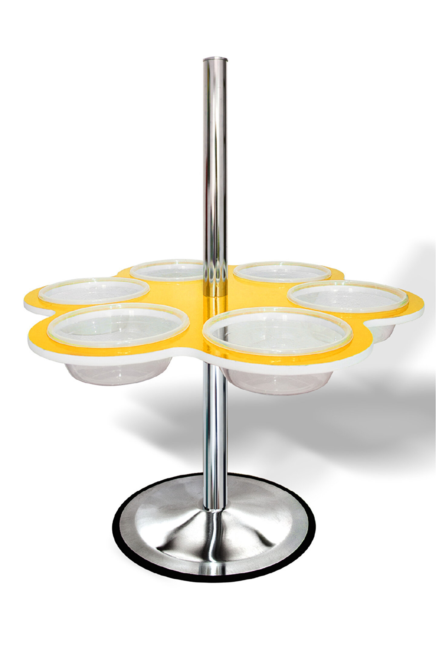 Çocukların renkli kumlarla boyamalar yapabilmeleri için geliştirilen "Kum Havuzu" standı, çocukların kullanabilirliği, taşınabilirliği ve görselliği sayesinde ön plana çıkmaktadır. ; 6 adet şeffaf plastik tabak yerleşebilen standa, tabakların içerisine farklı renklerde renkli kumlar konularak, çocukların ayakta etrafında dönerek istediği gibi özgürce boyama aktivitesi yapabilmektedir. ; Sağlam tabanlık sayesinde devrilme riski en az seviyededir. ; Standımız, farklı amaçlar doğrultusunda da kullanılabilir. ; Malzeme içeriği sıvı olmayan ürünlerin teşhir standı, uygulama standı veya demo standı olarak kullanılabilir. ; Mağaza içine, vitrinlere, açık alanlara yerleştirilebilir. ; Üst sütunun üzerine, ışıklı ışıksız, fiyat etiketi, açıklama bilgisi, yönledirme tabelası gibi unsurlar rahatlıkla uyarlanabilir. ; ( Paket içeriğinde bu unsurlar yoktur. ; ) Teknik Bilgiler / Ölçüler : Masa : İki yüzey farklı renklerde renkli folyo kaplama. ; Taban : 48cm çap, lastikli, krom kaplı metal saç, paslanmaya karşı dayanıklı. ; Ayak ve Sütun : 6cm çap, 70cm boy, krom kaplı boru şeklinde metal, paslanmaya karşı dayanıklı. ; Tabak : Şeffaf Plastik Tabak, 26cm çap, 11cm derinlik. ; ( Gıda tüzüğüne uygun ) Masa Yüksekliği : 75cm Tam Yükseklik : 147cm Masa Çapı : 95cm Ağırlık : 13,5 kilogram Renkli Kumlar, Boyama Kartları ve diğer ürünlerimiz için lütfen firmamızın mağazasını ziyaret ediniz. ; Demonte olarak gönderilmektedir. ; Elle monte edilebilir. ; Montaj kılavuzu vardır. ; Kargo Dahil fiyattır.;