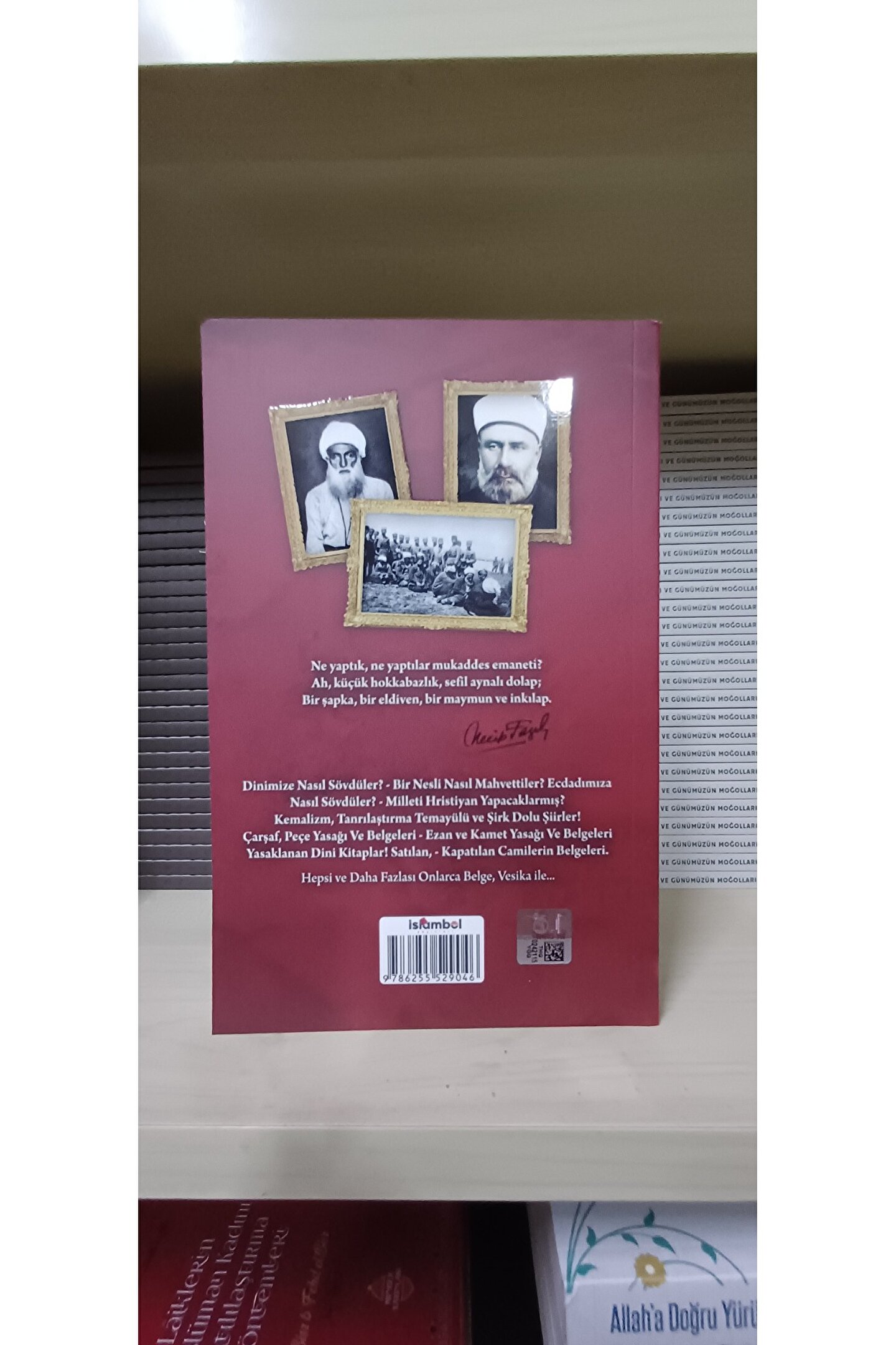 Ne yaptık, ne yaptilar mukaddes emaneti? Ah, küçük hokkabazlik, sefil aynalı dolap; Bir şapka, bir eldiven, bir maymun ve inkılap.; Dinimize Nasıl Sövdüler? - Bir Nesli Nasl Mahvettiler? Ecdadımıza Nasıl Sövdüler? - Milleti Hristiyan Yapacaklarmış? Kemalizm, Tanrılaştırma Temayülü ve Şirk Dolu Şiirler! Carsaf, Peçe Yasağı Ve Belgeleri - Ezan ve Kamet Yasağ Ve Belgeleri Yasaklanan Dini Kitaplar! Satılan, - Kapatılan Camilerin Belgeleri.; Hepsi ve Daha Fazlası Onlarca Belge, Vesika ile.
