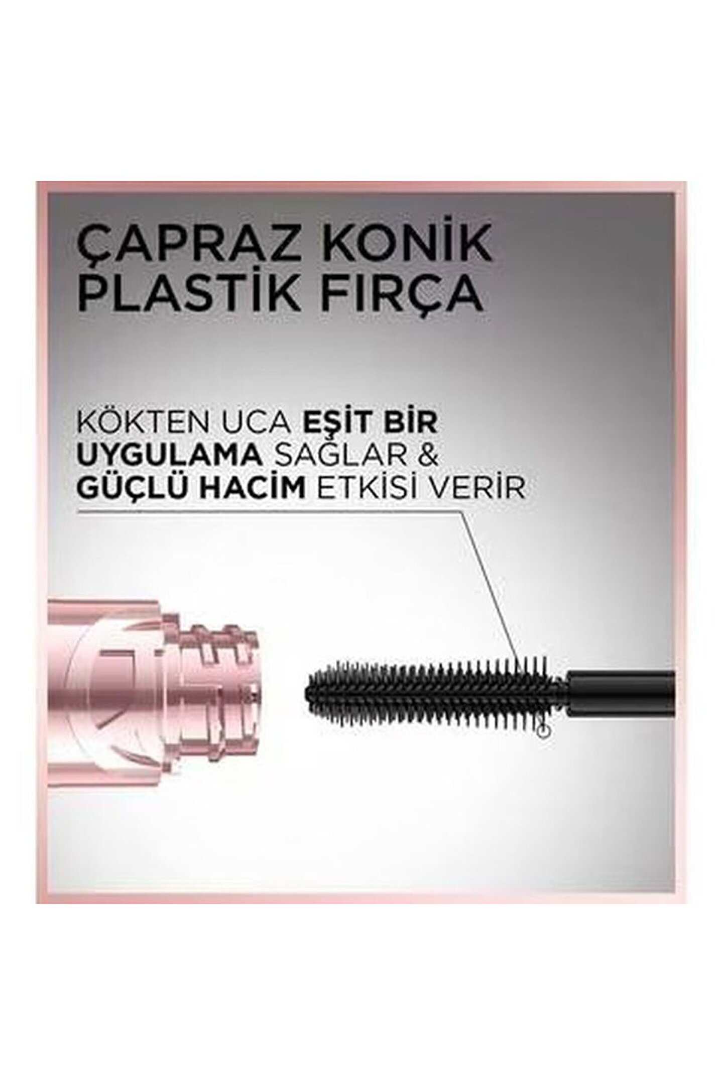 Çapraz konik fırçasıyla kirpik diplerinden en uca kadar uygulama yapılarak uzun ve hacimli kirpik görünümü oluşturulur. Topaklanmayan formülü sayesinde istenilen hacim ve uzunluk etkisine ulaşmak için kat kat uygulama yapılabilir.