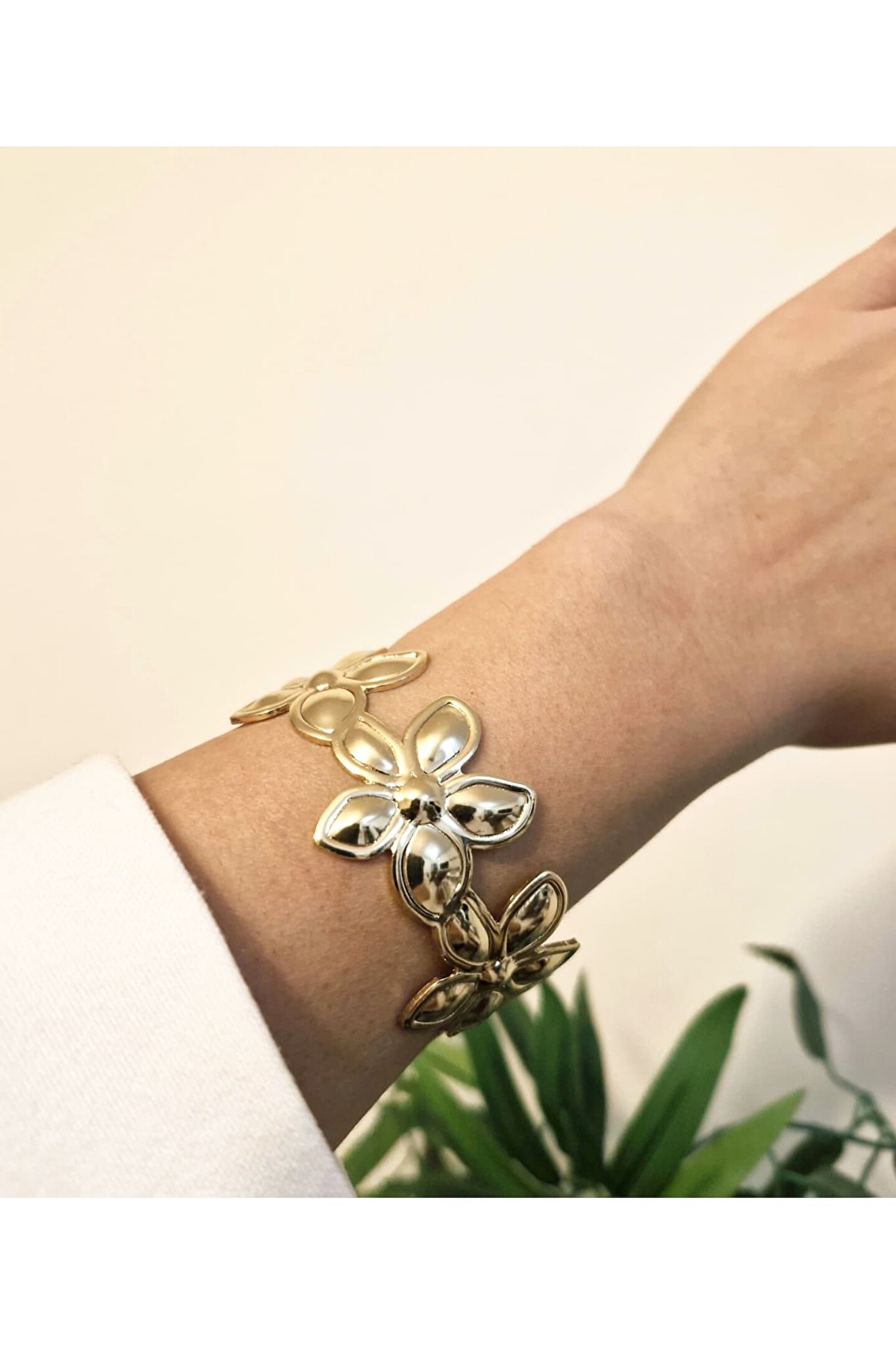 La Florine Altın Kaplama Gold Çiçekli Kelepçe
