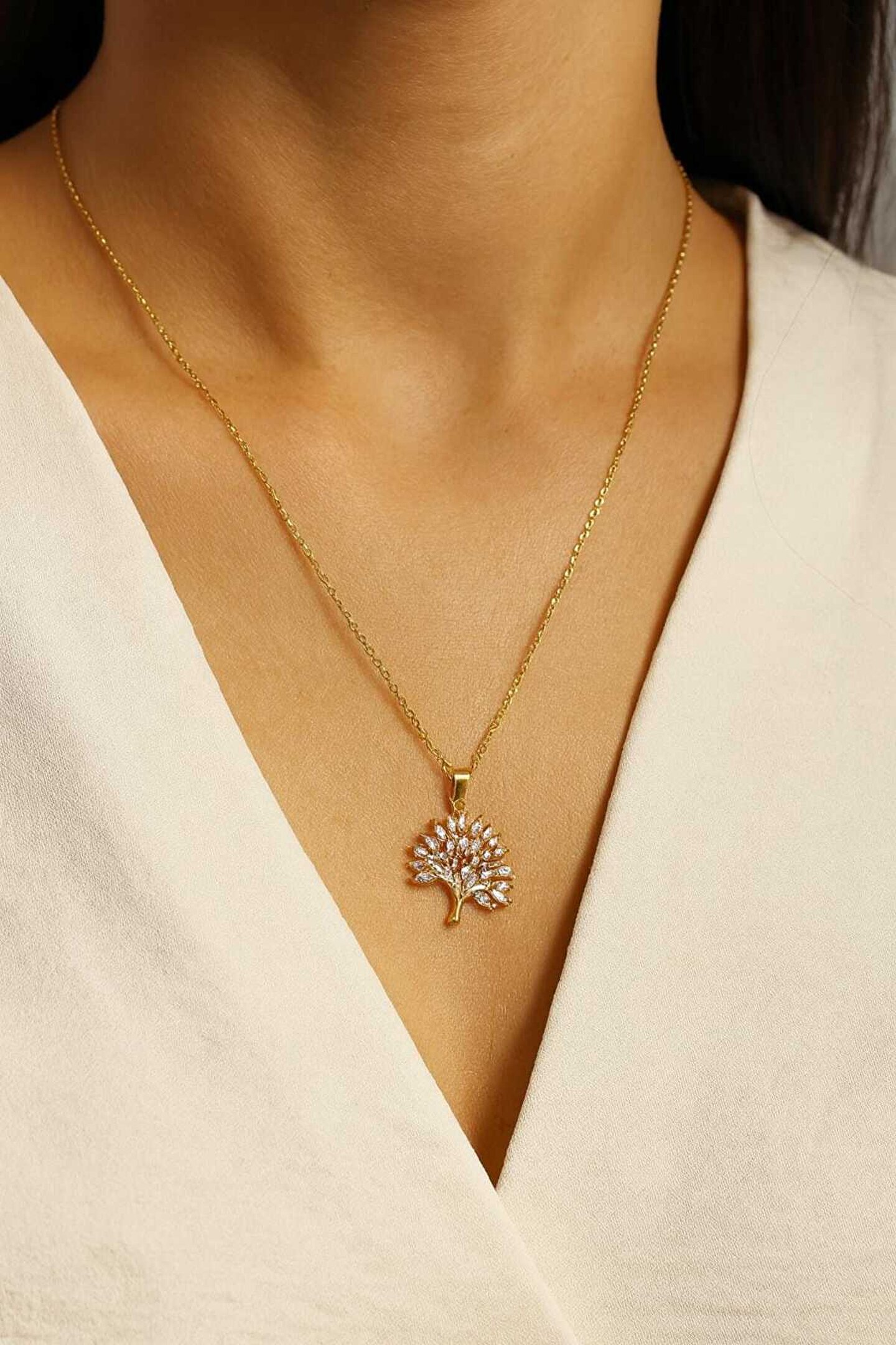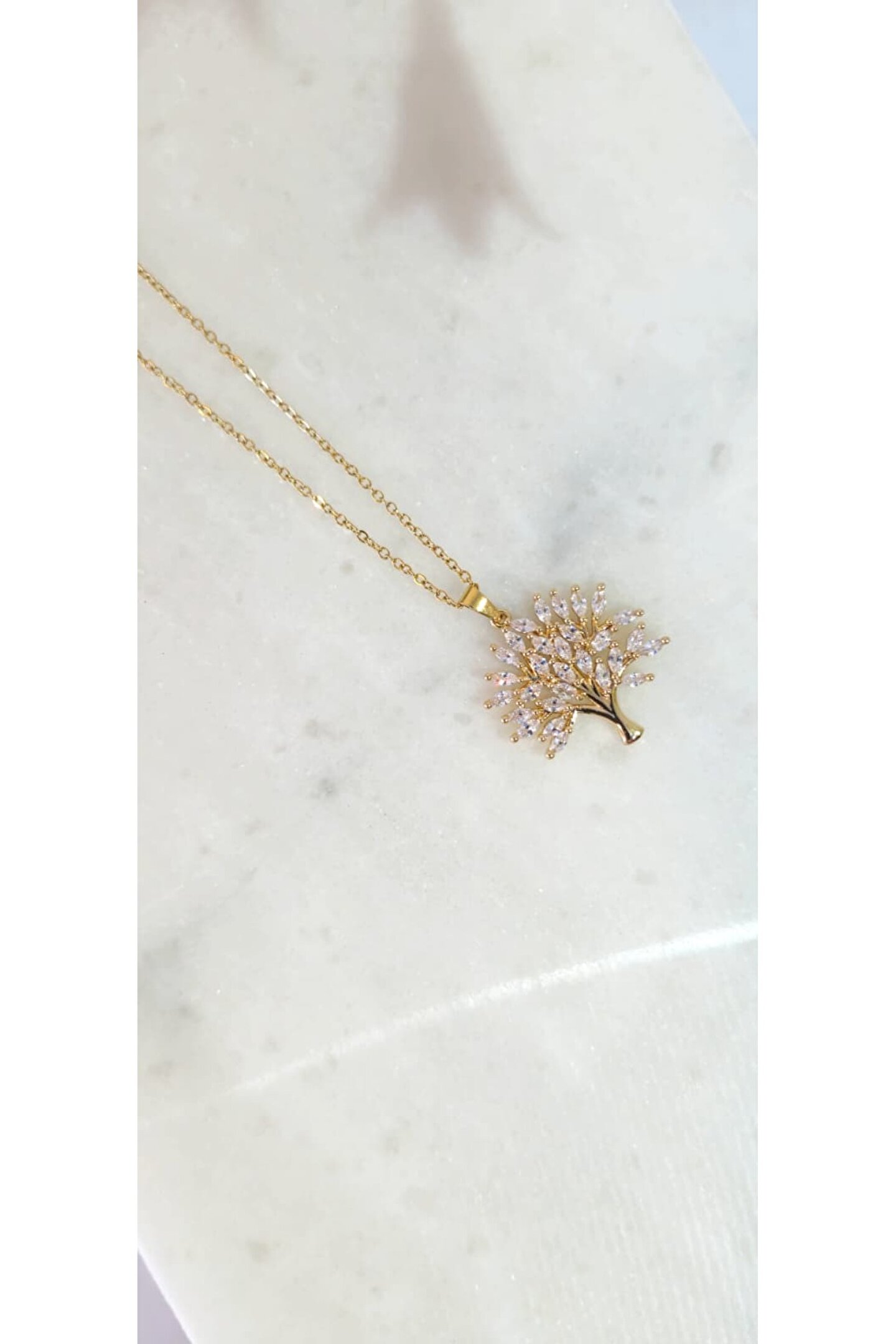 316L Paslanmaz çelikten üretilmiştir.; ; Uzun süre kullanılabilir, kararma yapmaz.; ; Hassas ciltler için uygundur.; ; Zarif tasarımı ile dikkat çeken bu kolye zirkon taşların parıltısıyla göz alıcı bir görünüm sunar.; ; Hayat ağacı, hayatı ve kökleri temsil eder.; ; Ağaç kökleriyle geçmişi, gövdesiyle bugünü, dallarıyla da geleceği simgeler.; ;