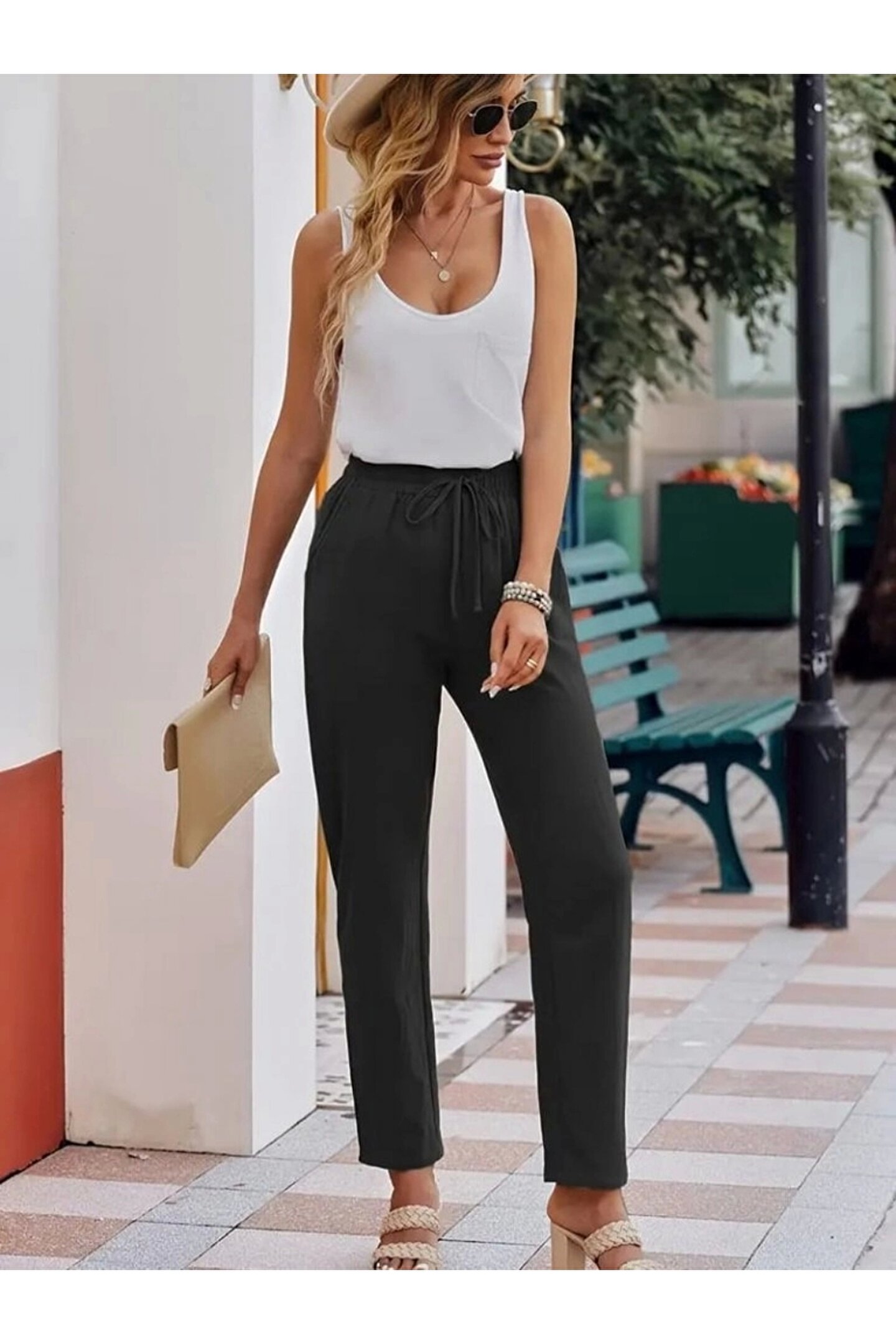 la mode istanbul Kadın Beli Lastikli Keten Pantolon