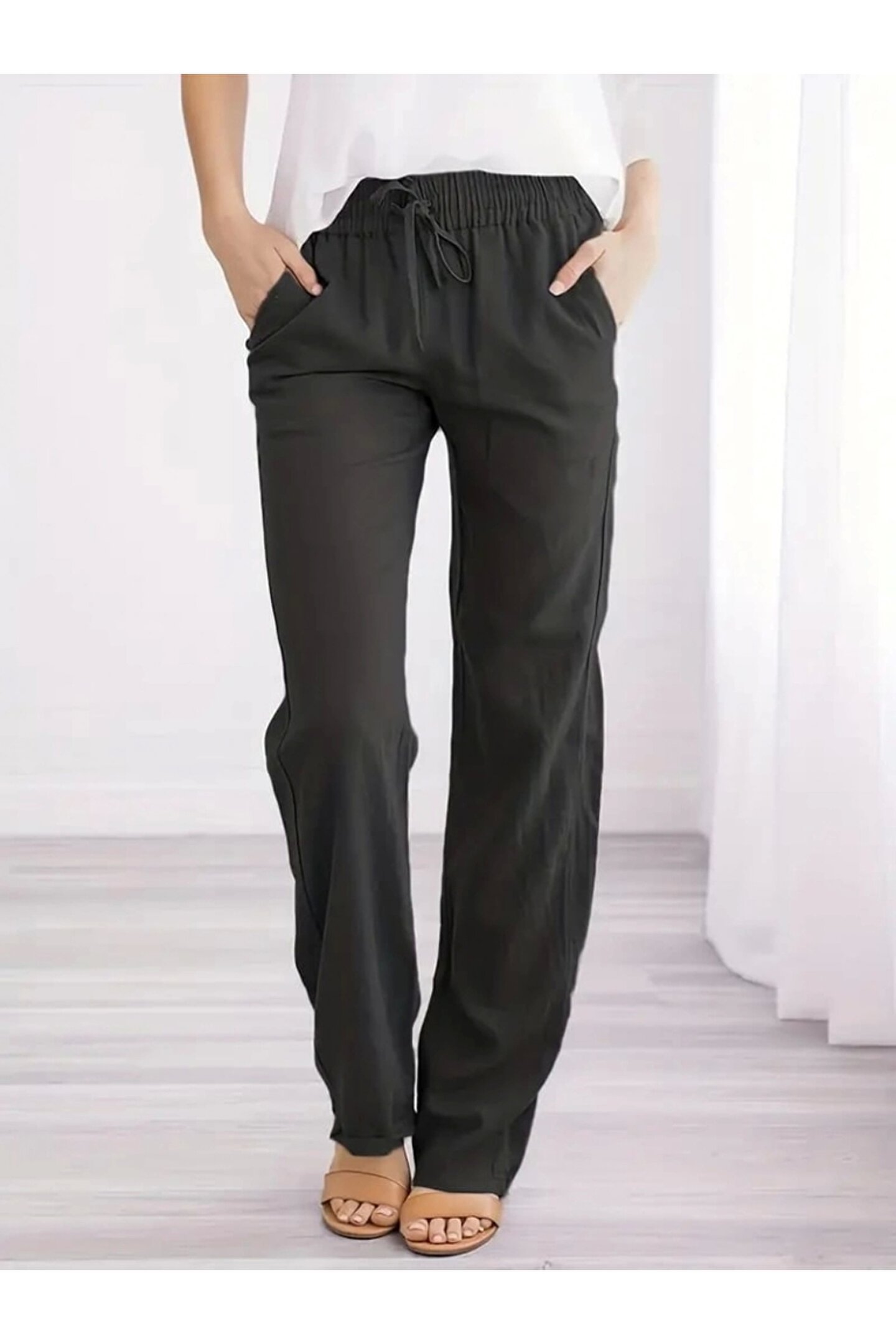 Kadın Beli Lastikli Keten Pantolon