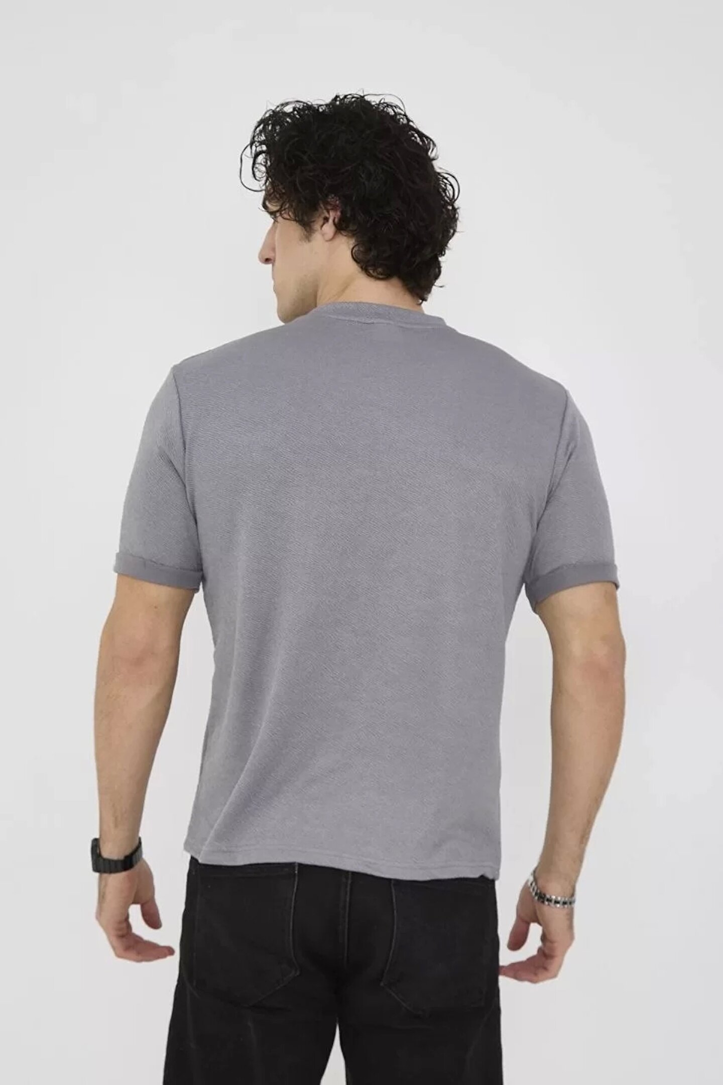 Unisex Bisiklet Yaka Slim Fit T-Shirt- Gri
