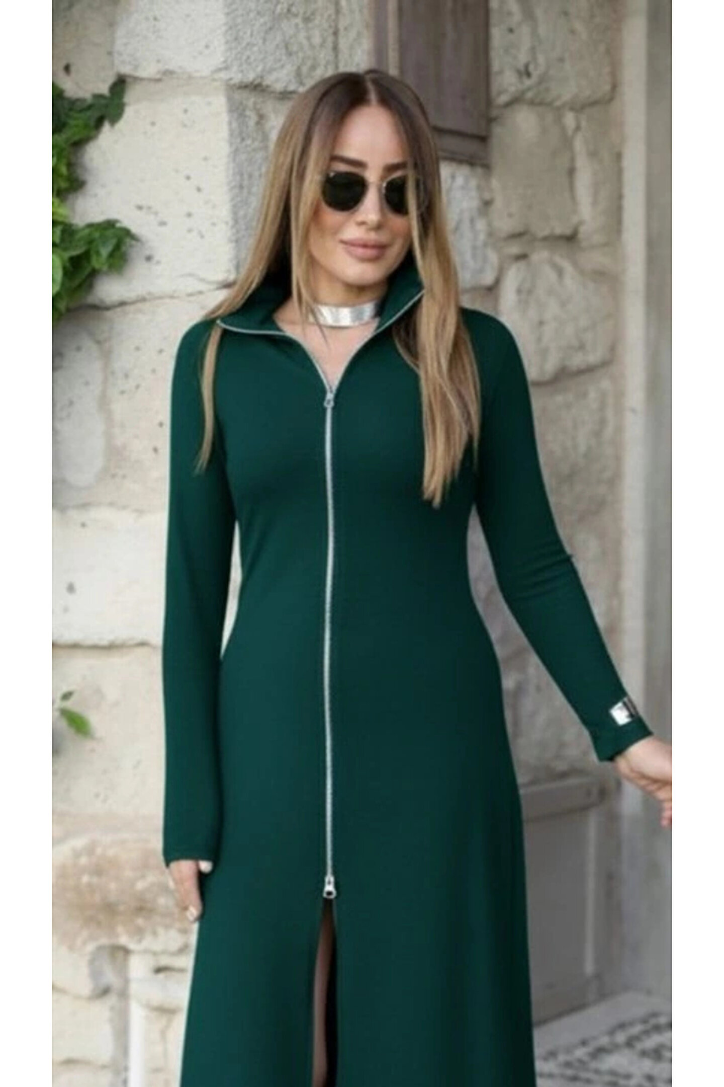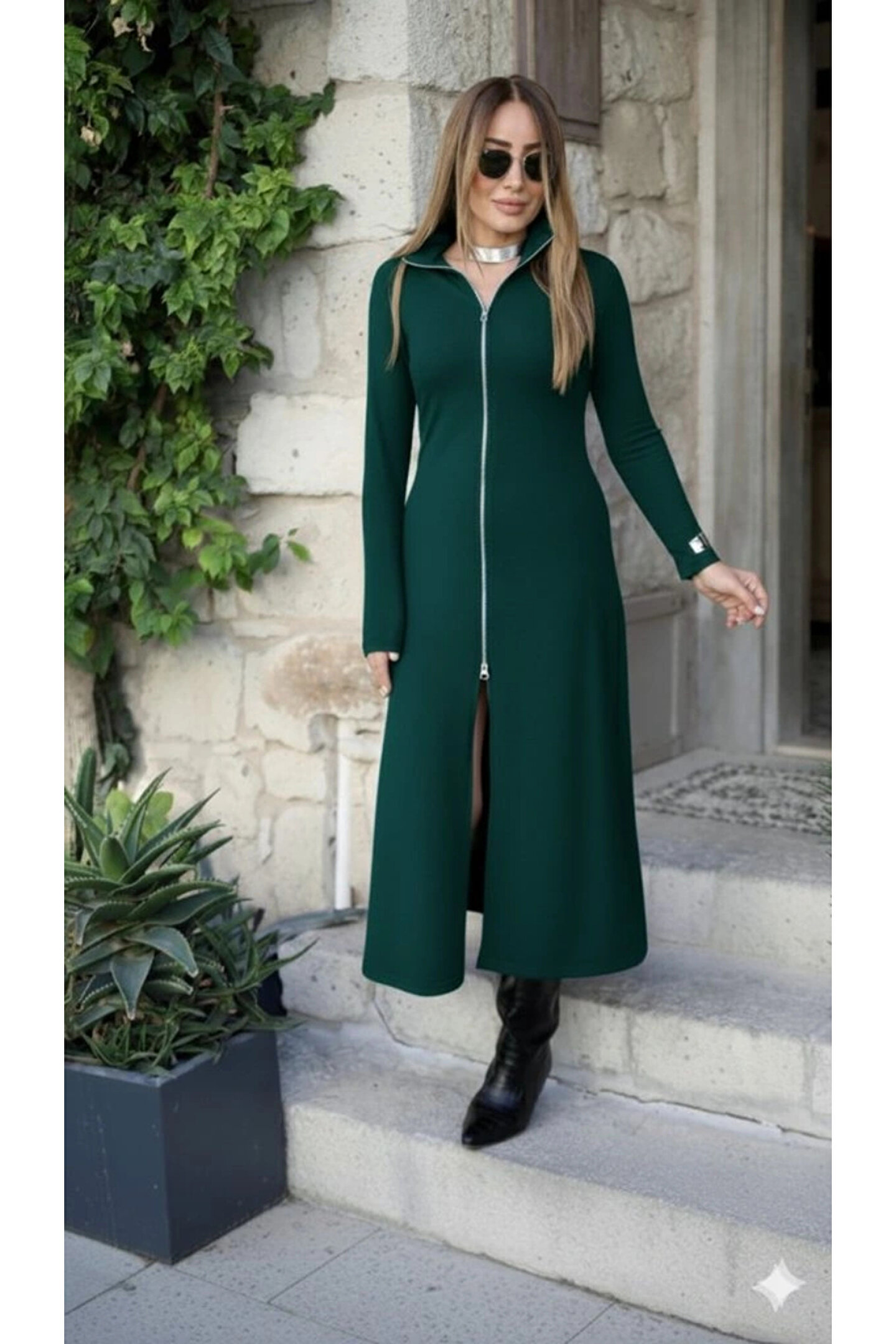 Lady Moss Kadın Uzun Kollu önden Fermuarlı Ithal Krep Elbise