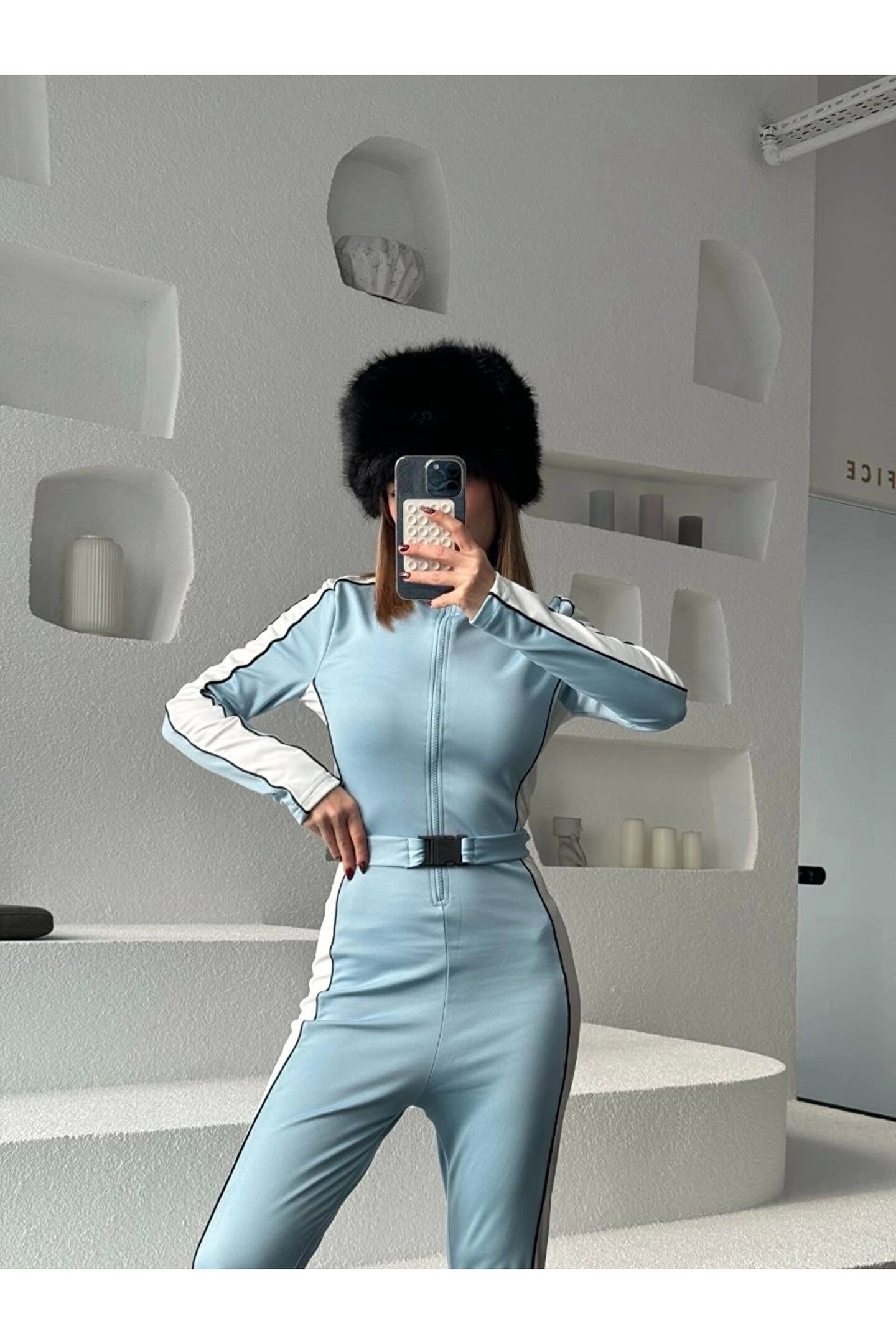 Lady Moss Kemer Detaylı Fermuarlı Tulum - Bebe Mavisi