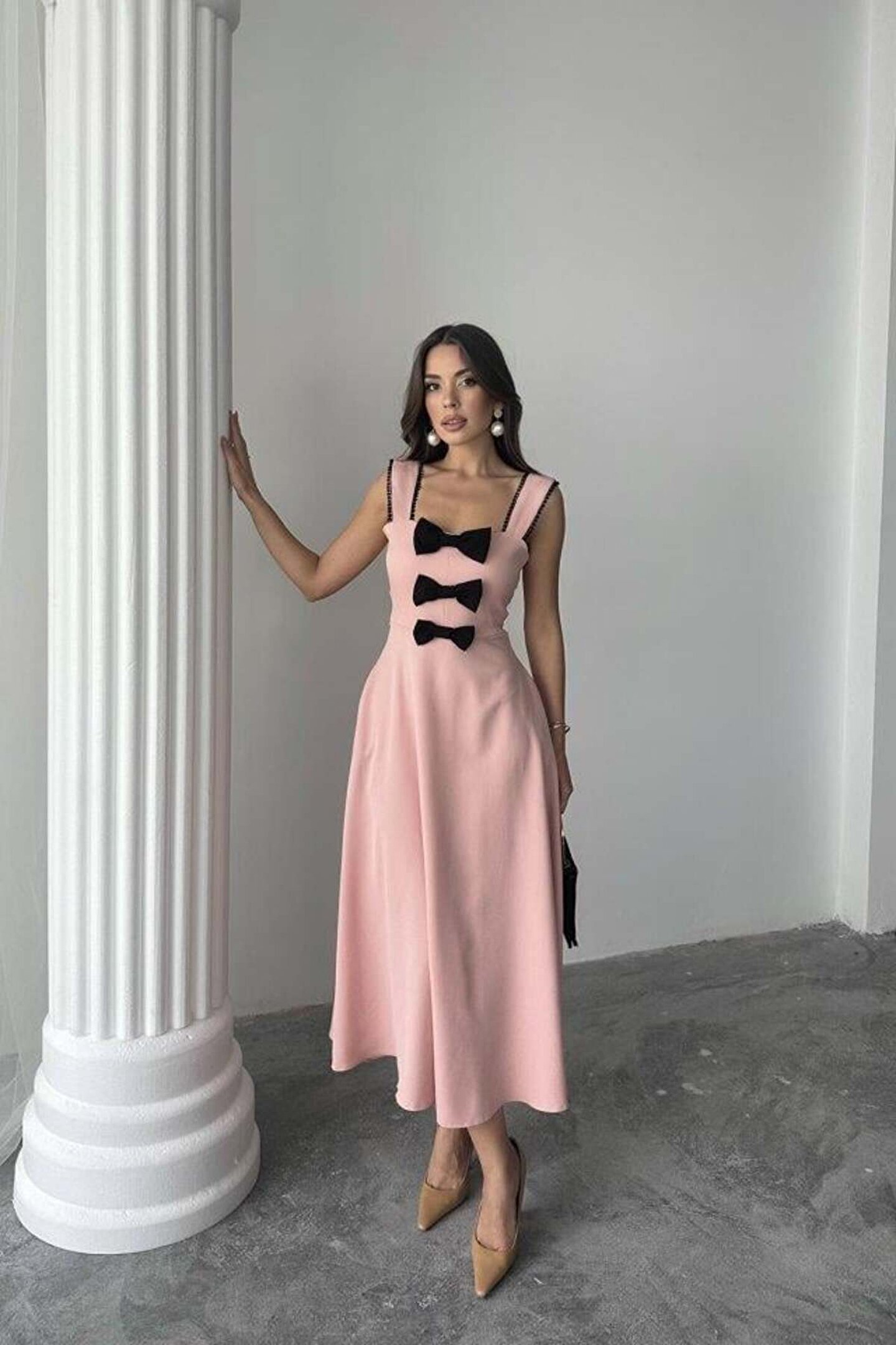 Pudra Fiyonk Garnili Dantelli Elbise