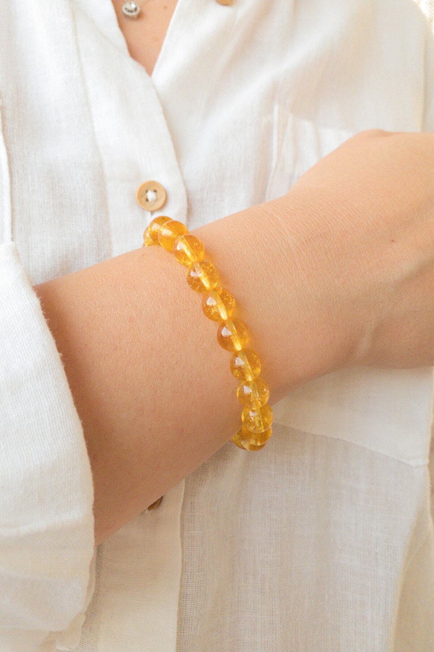Lalibo Doğal Taş Bileklik Sitrin 2. Sakral Ve 7. Taç Çakra , Ikizler Koç Ve Aslan Burcu Para Taşı