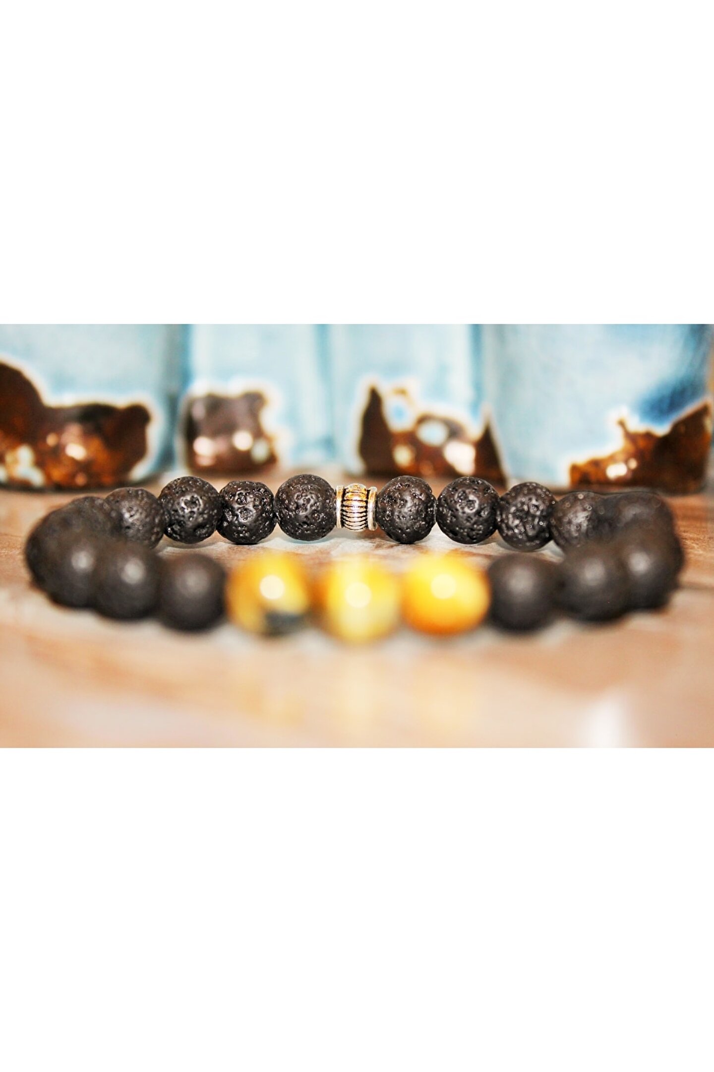 Lalibo Tılsımlı Doğal Taş Lav & Renkli Kaplan Gözü Sakinlik Bilekliği
