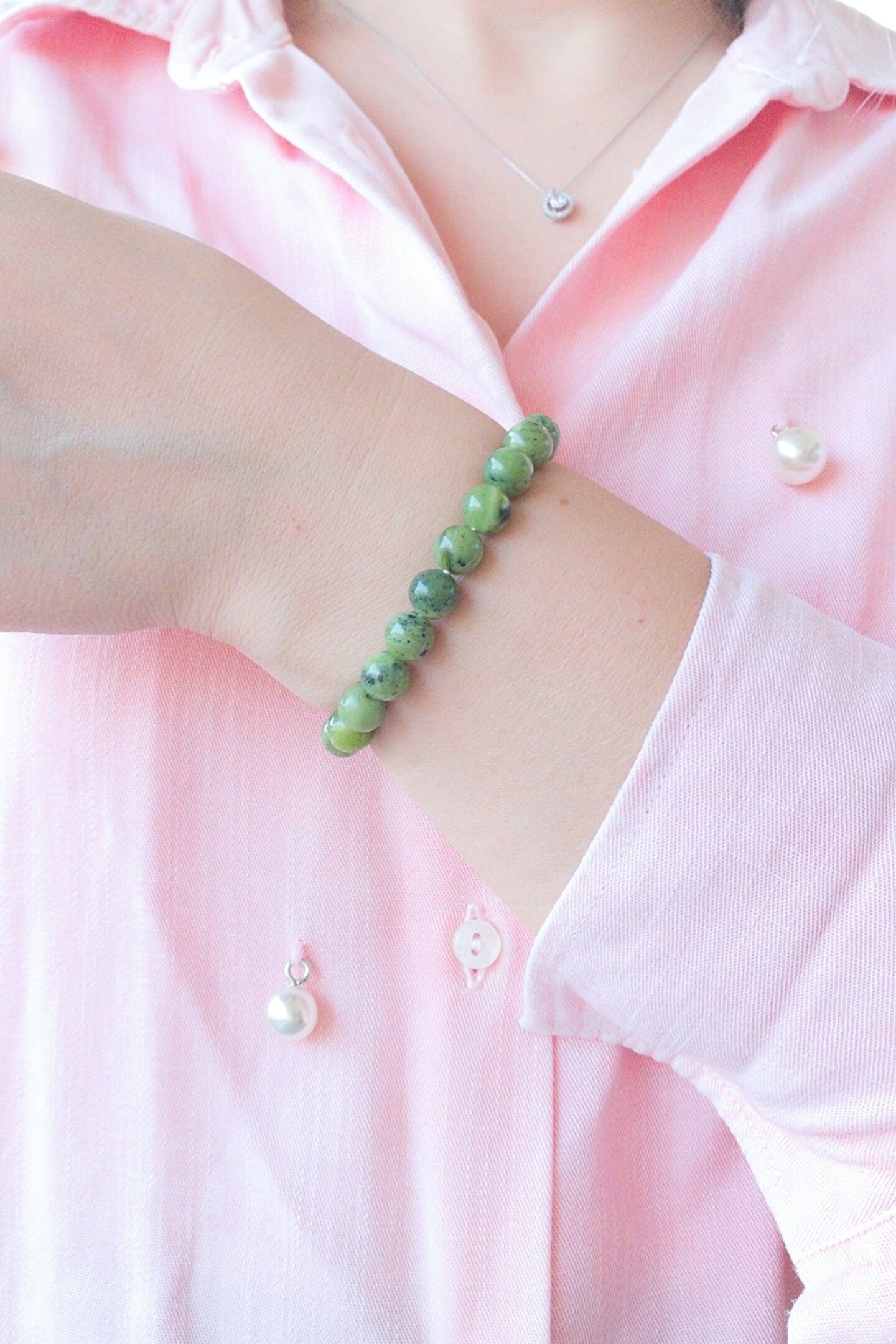 Lalibo Unisex Doğal Taş Bileklik Kanada Yeşim 1. Kök 4.kalp Çakra , Ikizler Balık Boğa Iyileştirici Taş