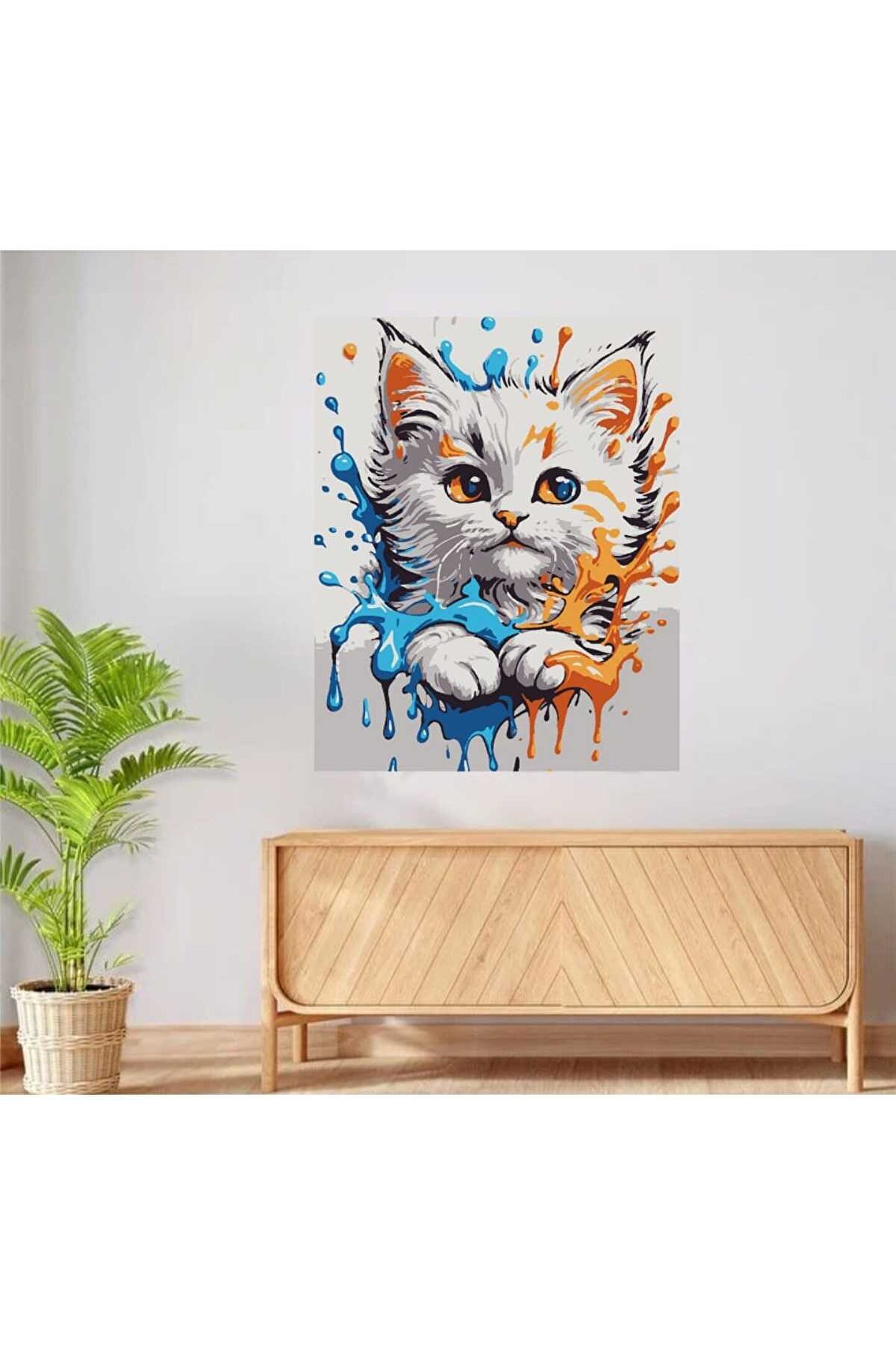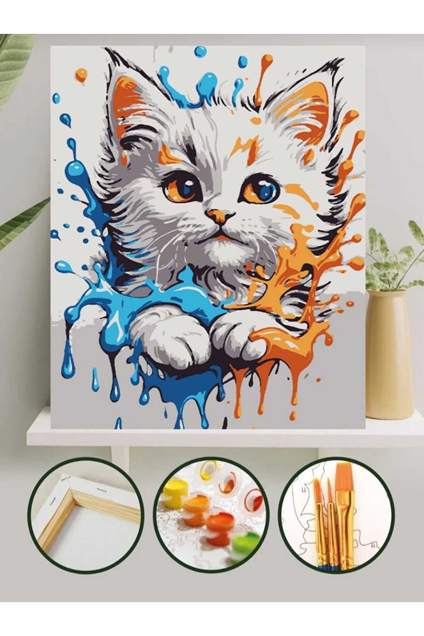 Lamba Cini Sayılarla Boyama Kasnaklı Tablo Seti Fırça Boya Dahil 30x40 KEDİCİK