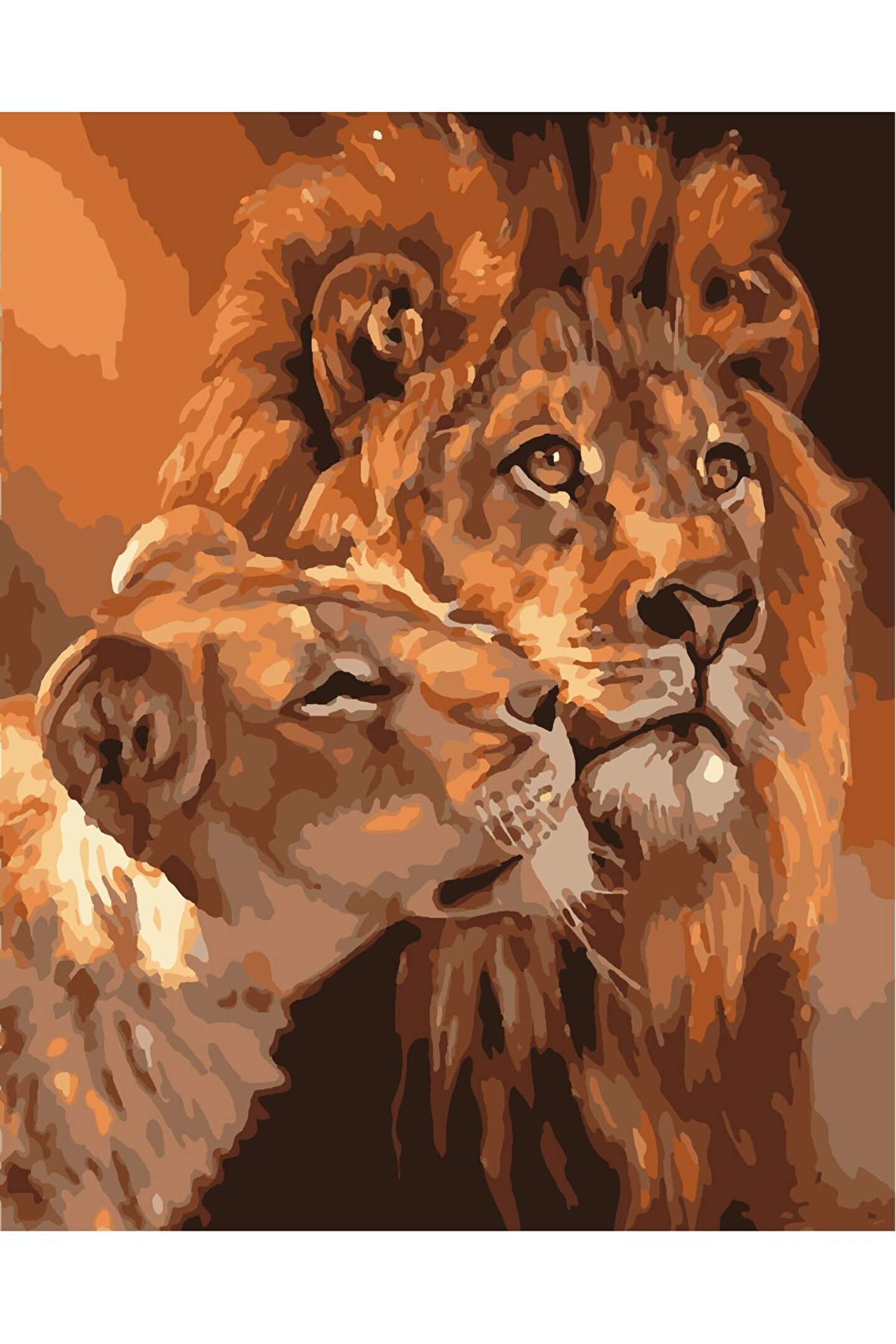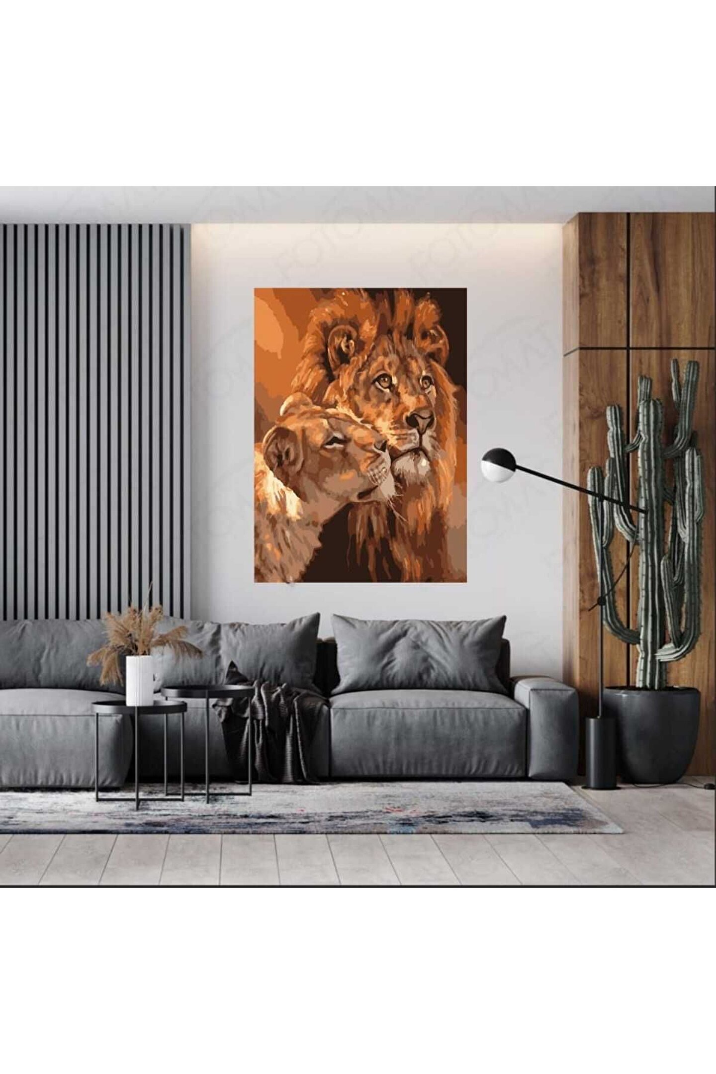 Lamba Cini Sayılarla Boyama Kasnaklı Tablo Seti Fırça Boya Dahil 40x50 Aslanların Aşkı