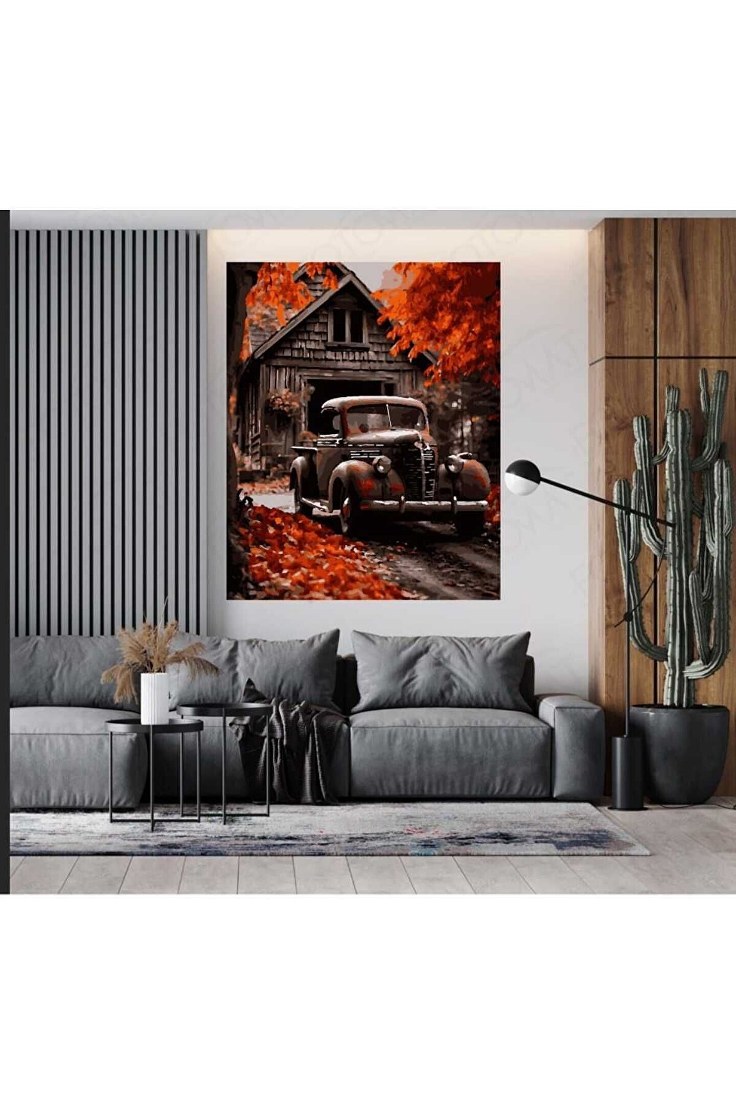 Lamba Cini Sayılarla Boyama Kasnaklı Tablo Seti Fırça Boya Dahil 40x50 Eski Araba