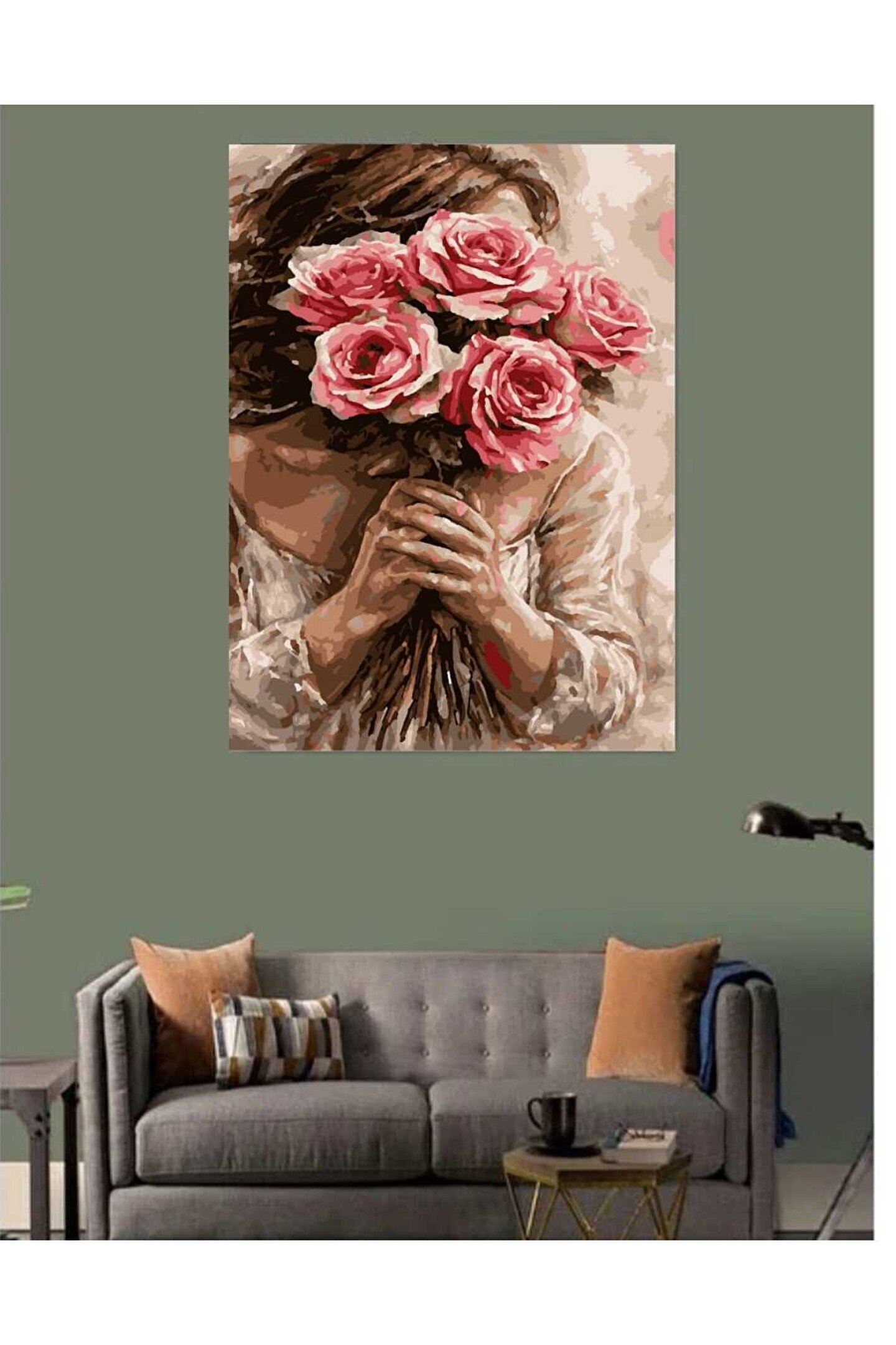 Lamba Cini Sayılarla Boyama Kasnaklı Tablo Seti Fırça Boya Dahil 40x50 Güller