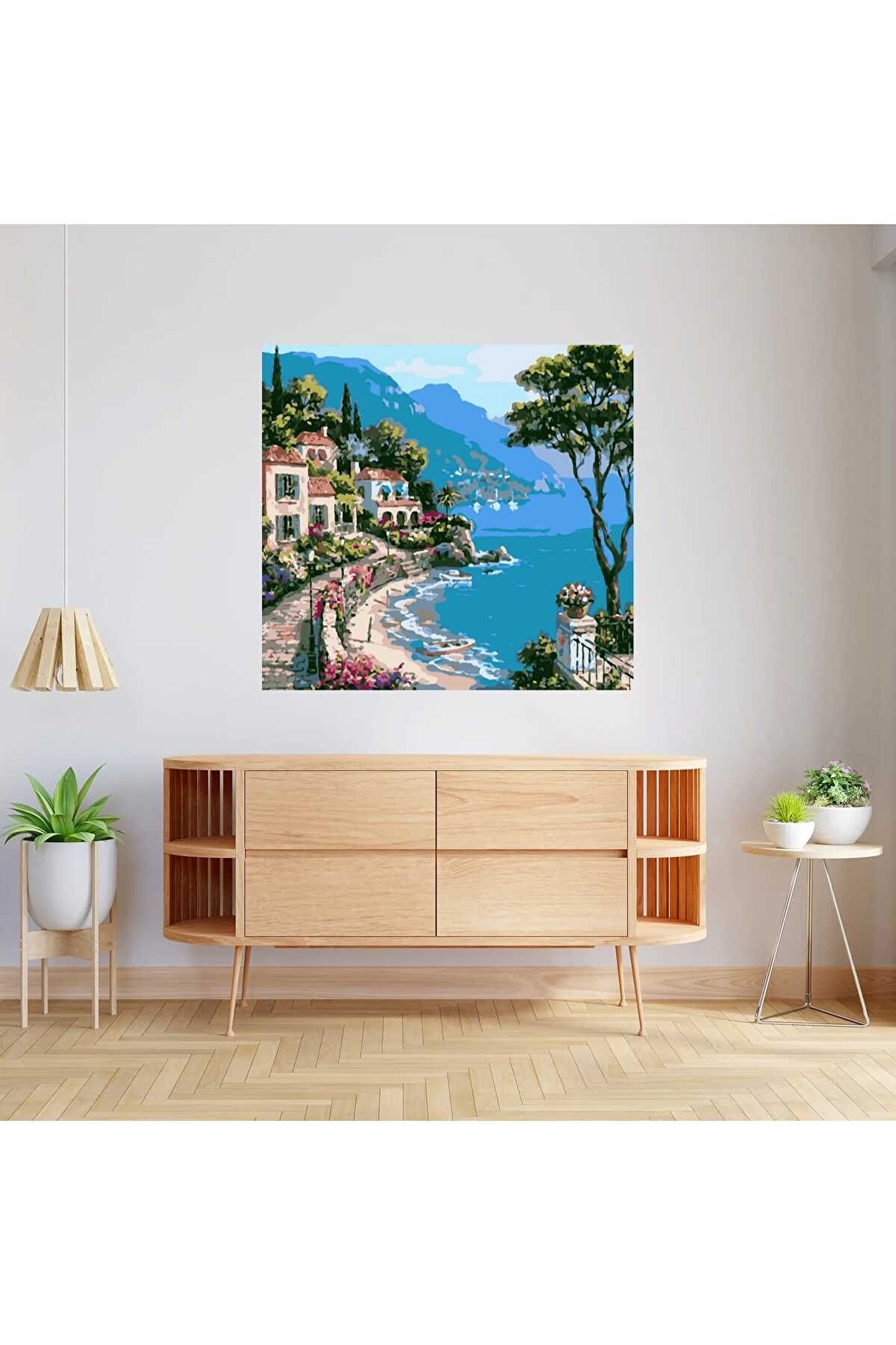 Lamba Cini Sayılarla Boyama Kasnaklı Tablo Seti Fırça Boya Dahil 40x50 Sahil Kasabası1