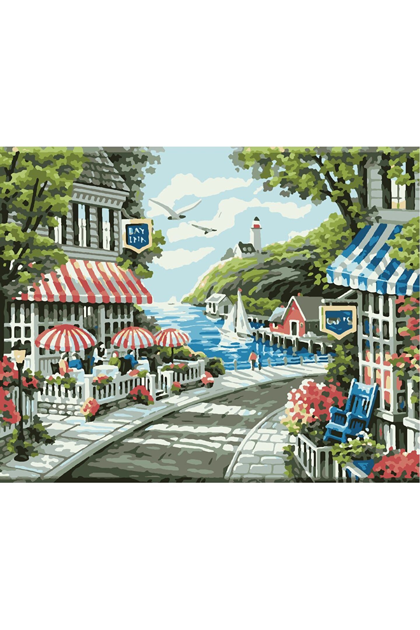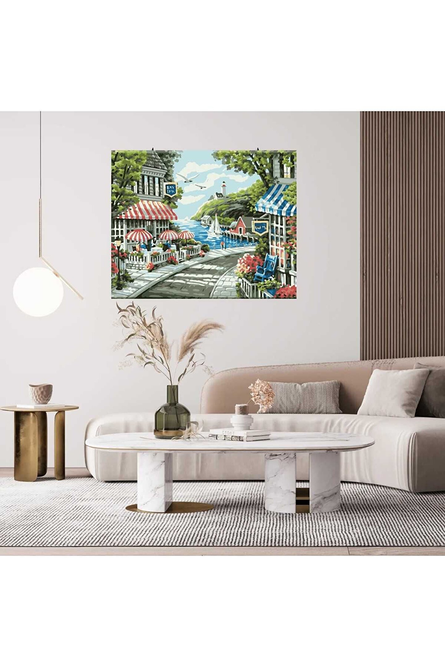 Lamba Cini Sayılarla Boyama Kasnaklı Tablo Seti Fırça Boya Dahil 40x50 Sahil Kasabası2