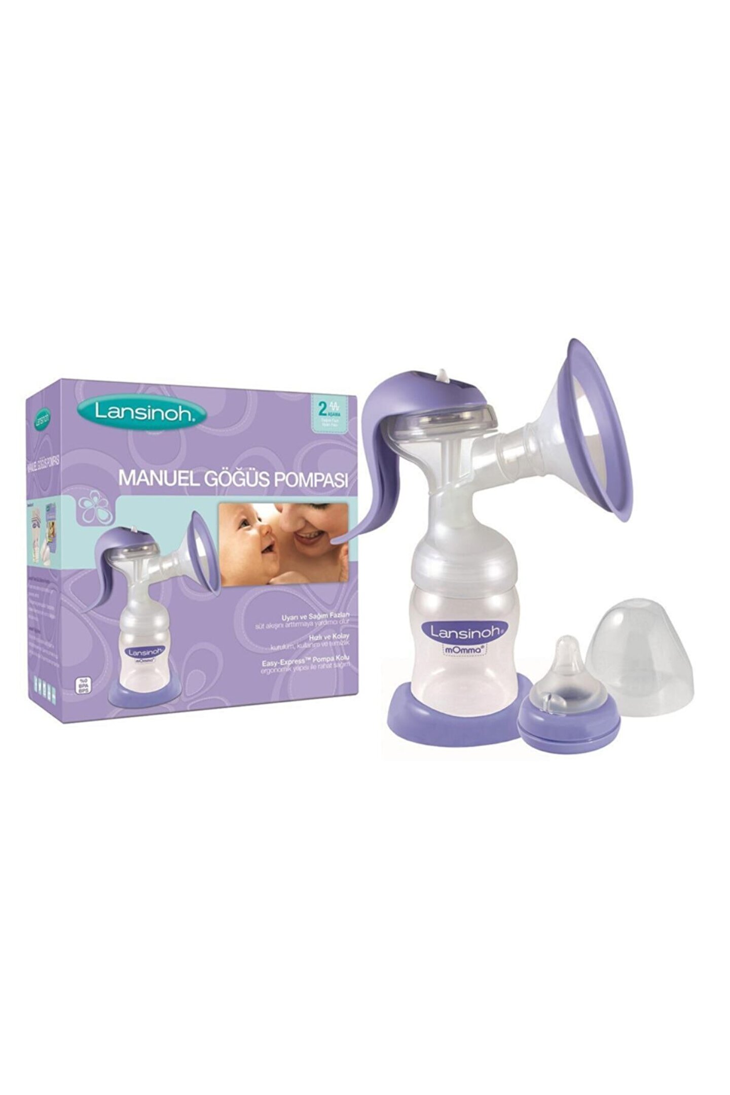 ? YENİ Lansinoh Manuel Pompaya eklenen uyarı fazı ile annede süt oluşmasını destekler. ; ? Sağım fazında ise anne sütü etkin şekilde boşaltır. ; ? Uyarı Fazı - Süt akışını başlatmak için hızlı emiş ritmi ? Doğal emzirmede bebek emmeye başlamadan önce meme bebek tarafından uyarılarak prolaktin hormonu salgılanması sağlanır. ; ? Prolaktin hormonu da anne memsinde sütün oluşmasını sağlar. ; ? Uyarı modu ile sağım başlamadan önce anne göğsü nazikçe uyarılırak prolaktin hormonun salgılanması sağlanarak süt akışı başlatılır. ; ? Başarılı bir sağımın en önemli noktası uyarı refleksinin oluşmasıdır. ; ? Sağım Fazı - Süt akışını arttırmak için daha yavaş ve derin emiş gücü uygulanarak süt memeden boşaltılır. ; ? Uyarı modundan sağım moduna tek bir hareket ile geçiş yapılabilir. ; ? ComfortFit™ koruyucu göğüs yastığı, anne göğüsüne tam olarak uyum sağlayarak daha etkili bir sağımı destekler. ; ? Ergonamik yapısı ve yeni diyafram sistemi sayesinde tek elle rahatça kullanılabilir. ; ? Bebeğin doğal emiş ritmini olabildiğince yakın taklit ederek maksimum süt akışını sağlar. ; ? Kutu içerisinden çıkan NaturalWave Peristaltik Biberon Emziği bebeklerin biberonu kolay kabul etmesine ve anne memesine geri dönmesine destek olur. ; ? Anne sütünün saklanması için tercih edilen BPA ve BPS içermeyen polipropilenden üretilmiştir. ; ? Evde ve dışarıda kullanıma uygundur. ; ? Sessiz, kompakt ve hafiftir. ; ? Kutu içerisinde yedek valf bulunmaktadır. ; ? Lansinoh Manuel Pompa ile sütünüzü sağabilir, kapama diski yardımı ile sütünüzü süt saklama şişesinde saklayabilir ve NaturalWaveTM biberon emziği yardımı ile bebeğinizi besleyebilirsiniz. ; ? Bebekler dilleri ile dalgaya benzer peristaltik bir hareket uygulayarak anne memesinden süt çıkışının gerçekleşmesini sağlar. ; ? Doğal emme hareketini desteklemek için özel olarak tasarlanan NaturalWave™ peristaltik biberon emziğinin, doğal emme hareketini desteklediği klinik olarak kanıtlanmıştır. ; ? Emzirmeden biberona ve biberondan emzirmeye kolay geçiş ? Anne memesindeki gibi peristaltik hareketi uygulayan emzirme düzeni oluşmuş bebekler NaturalWave Biberon Emziğini kolayca kabul eder ve sonrasında da anne memesinden emmeye istekli olur. ; ? NaturalWave™ Peristaltik Biberon Emziğinin, bebeklerin doğal beslenme hareketlerini sürdürmeyi desteklediği klinik olarak kanıtlanmıştır. ; ? Biberon Emziğinin Ucu ? Esnek materyal ideal basıncın ayarlanabilmesine yardımcı olur ? Yumuşak %100 Silikon ? Biberon emziğinin yapısını güçlendirir ve daralmaları önler ? Dikey Şeritler ? Dilin uyguladığı peristaltik hareketleri kolaylaştırır ? Benzersiz, Kademeli Ve Eğimli Tasarım ? Kolay kavrama ve etkin emişi destekler ? Geniş Ve Kalın Dokulu Taban ? Kolik sancısının potansiyel nedeni olan hava yutmayı azaltır ? AVS™ Hava Giriş Sistemi ? Kolik sancısının potansiyel nedeni olan hava yutmayı azaltır ? Lansinoh® Manuel Göğüs Pompası Kutu İçeriği : ? 2 adet valf ? 1 adet silikon diyafram ? Pompa gövdesi ? Bağlantı pimi ? Pompa kolu ? Sızdırmaz disk ve şişe kapağı ? ComfortFit™ Göğüs Yastığı ? Ergonomik Easy-Express™ Pompa Kolu ? Lansinoh Biberon Şişesi ? Özel Şişe Standı ? NaturalWave™ Biberon Emziği ve Kapağı ? Diğer Lansinoh ürünlerine ulaşabilmek için Lansinoh logosuna dokunmanız yeterlidir. ; Biberon, emzik, göğüs pompası vb. ; tüm hijyenik gruba dahil ürünler, özel ve hassas ürün grubumuza dahil olması nedeni ile değişim ve iadesi bulunmamaktadır.;