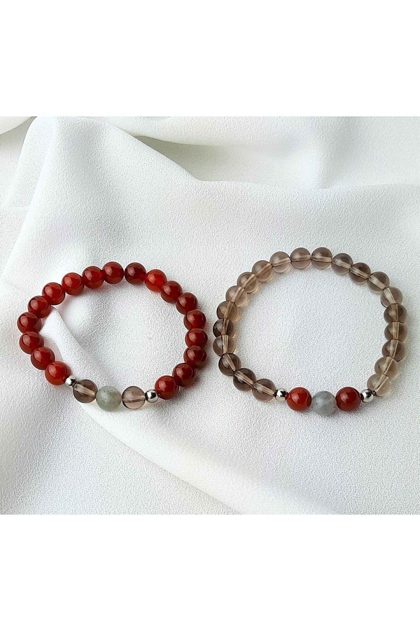 Lavinia Atelier Çift Sevgili Eş Doğal Taş Bileklik Hediyelik Ürün Akik , Dumanlı Kuvars