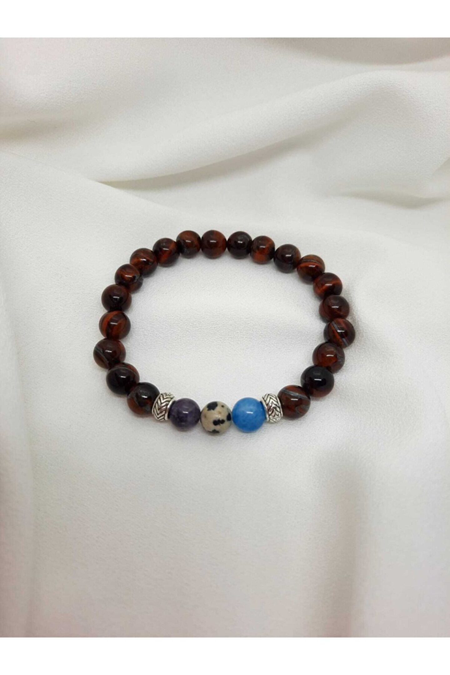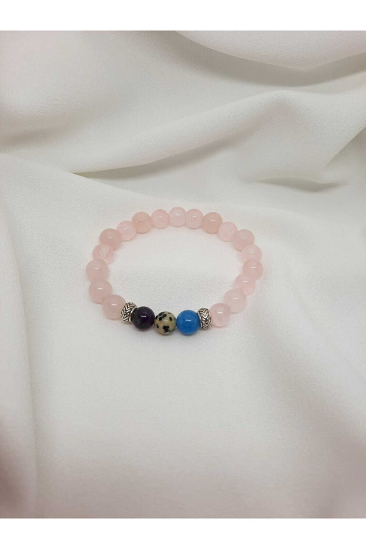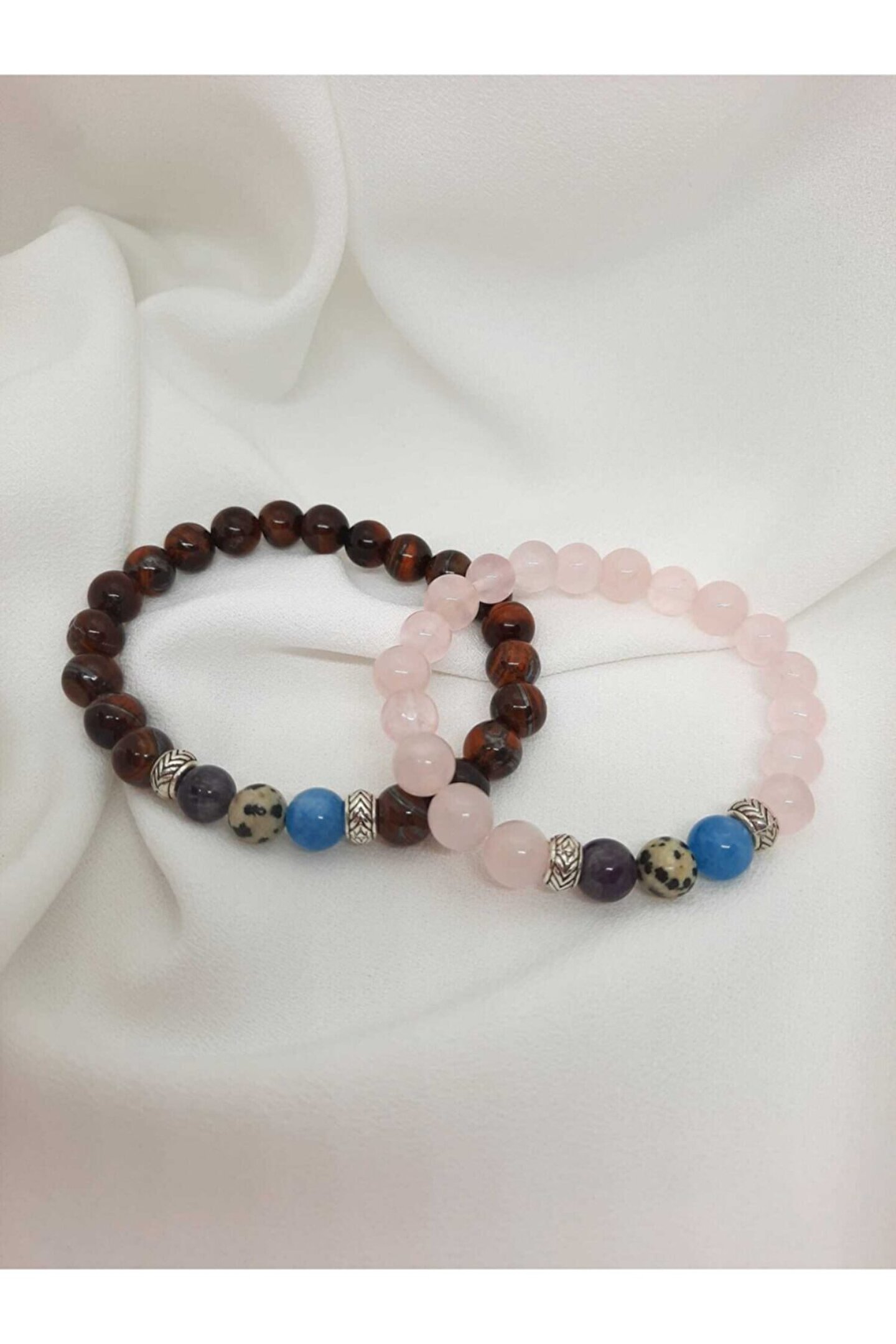 Lavinia atelier çiftlere, sevgililere, eşlere özel tasarladığımız lucia model bileklik %100 doğal taş kullanılarak tasarlanmıştır .Bedenleri standart olup, lastikli misina kullanılmıştır .Doğal taş şekli, düz kesim 8mm boyuta sahiptir . %100 orjinal pembe kuvars ,kaplan gözü , ametist, mavi kuvars ve dalmaçyalı jasper kullanılmıştır. Ürünler doğal taş olduğundan dolayı renk ve şekillerinde farklılık görülebilir. Kaplan gözü taşı özellikleri; Duygulara etki eden bir taş olduğu bilindiği için, çiftler arasında çok yaygın kullanılır. - inatçılığı azaltır ve kişinin olayları daha net görmesine imkan verir. - dayanıklılığı arttırır ve engellere rağmen yola devam etme olanağı verir. - nazardan koruduğuna inanılır. - güç ve cesaret taşı olarak bilinir. Pembe kuvars özellikleri ; Doğal taşların çeşitli enerjilere sahip olduğu bilinmektedir , ancak etkileri kişiden kişiye değişkenlik gösterebilir. Taşların özelliklerinin bilimsel kesinliği yoktur ,fakat ürünlerimizde kullanılan tüm taşlar %100 gercek doğal taş olup güvenle alışveriş yapabilirsiniz.