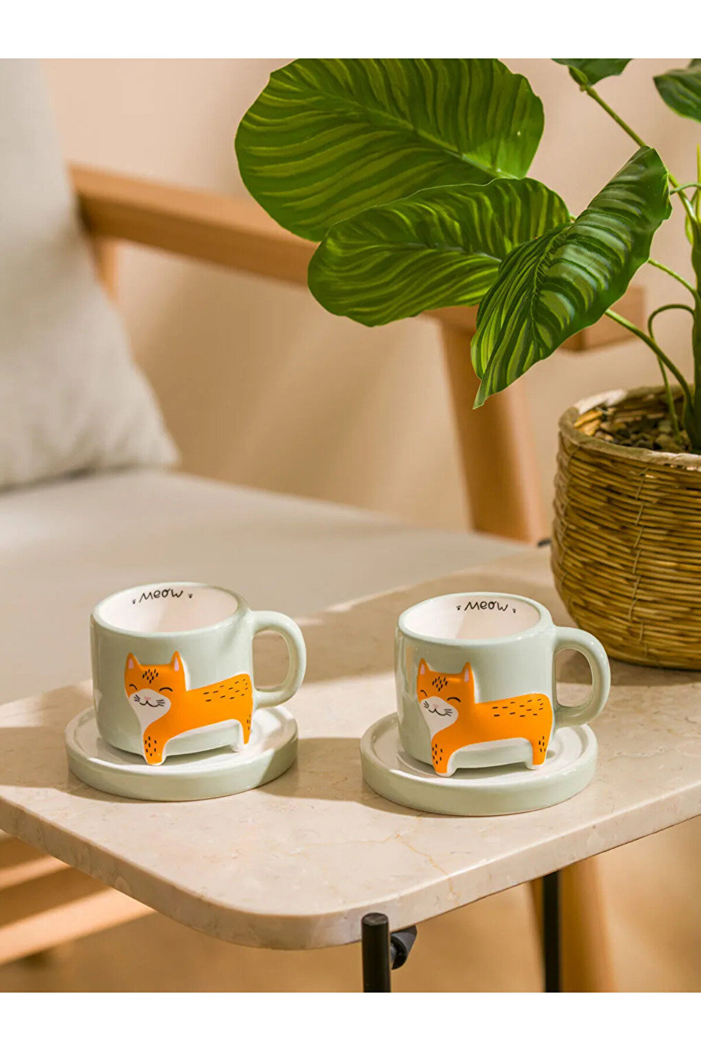 LCW Karışık Tilki Figürlü 2 Kişilik Seramik Kahve Fincan Takımı 80 Ml