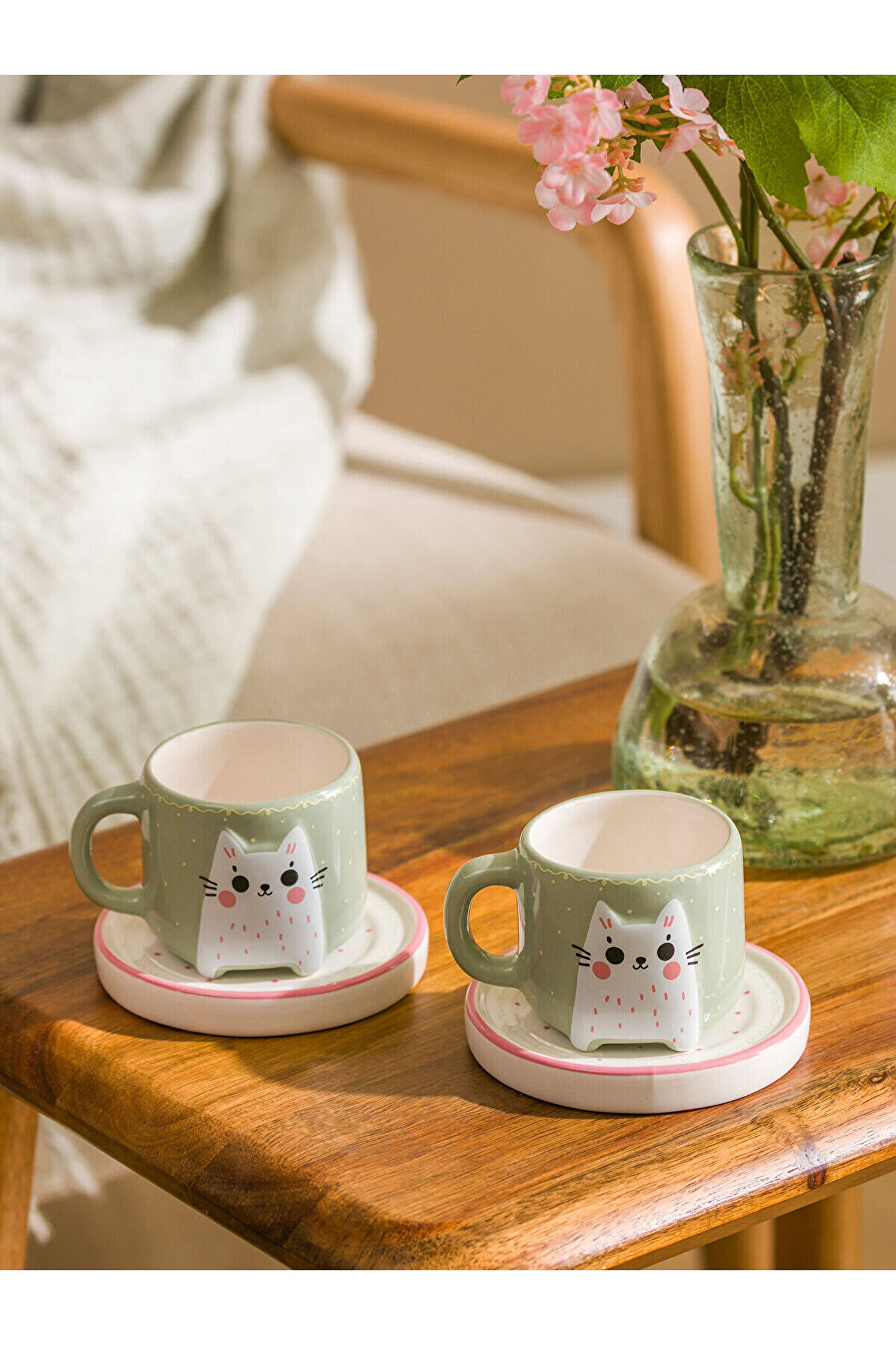 Vizyon Yeni Sezon Kedi Baskılı 2 Kişilik Seramik Kahve Fincan Takımı 90 ml