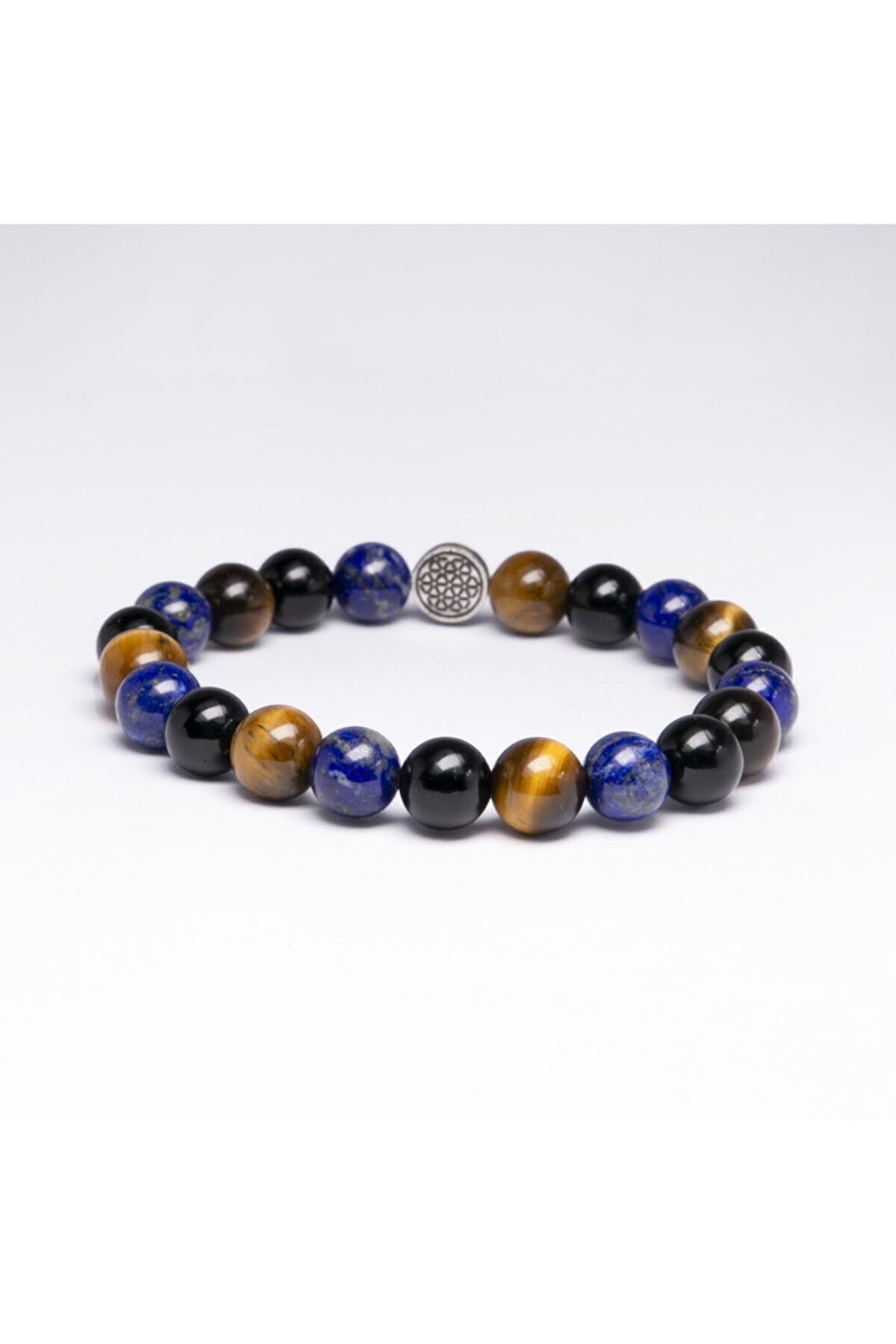 Doğal Lapis Lazuli, Oniks ve Kaplan Gözü Taşları: Kafa karışıklığına son verir.; Hedeflerini belirle ve başarıyı yakala.; Şans ve güçlü bir irade seninle.; ; Zihinsel temizlik taşı olan LAPİS LAZULİ zihni berraklaştırır.; Akıl kıvraklığı verip konuşmayı güzelleştirir.; İç barışı ve kişinin kendisine değer vermesini sağlar.; Başarı ve cesaret taşı olan KAPLAN GÖZÜ zihni sakinleştirip niyetleri güçlendirir ve korkularınızı yenmenizi sağlar.; Şans ve sağlık taşı olan ONİKS odaklanmayı artırır.; Romantik ilişkileri düzenler.; Berrak, kıvrak bir zeka; konsantre ve odaklanmış bir akılla hedeflerini belirle, şans seninle.; Lapis lazuli hormonları düzenler, tiroid bezinin sağlıklı çalışmasını sağlarken, kaplan gözü baş ağrıları ve uykusuzluğu giderir.; OniKS göz tansiyon ve tedavisine yardım eder.; Lapis Lazuli Oniks Kaplan Gözü bileklik modelimiz ortalama 22-23 adet 8mm A kalite Gerçek Doğal Taştan oluşur.; Bileklikte kullanılan 925 ayar GÜMÜŞ üzerindeki yaşam çiçeği sembolü ile doğal taşın etkisi arttırılmıştır.; İnsan ve yaşamı muazzam geometrik orantısı ile ifade eden yaşam çiçeği sembolünün insana sağladığı faydalardan yararlanabilirsiniz.; ; Bileklik dayanıklı elastik ip nedeniyle her bileğe uyumludur.; Siparişiniz özel Lc19 kutusunda gönderilecektir.; ;