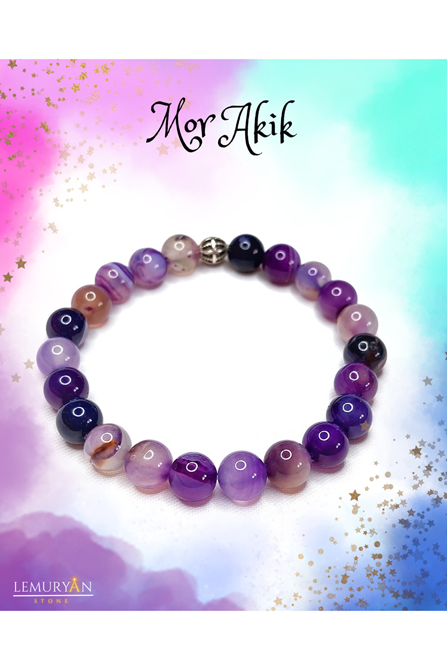 LEMURYANSTONE Doğaltaş Orijinal Mor Akik Bileklik