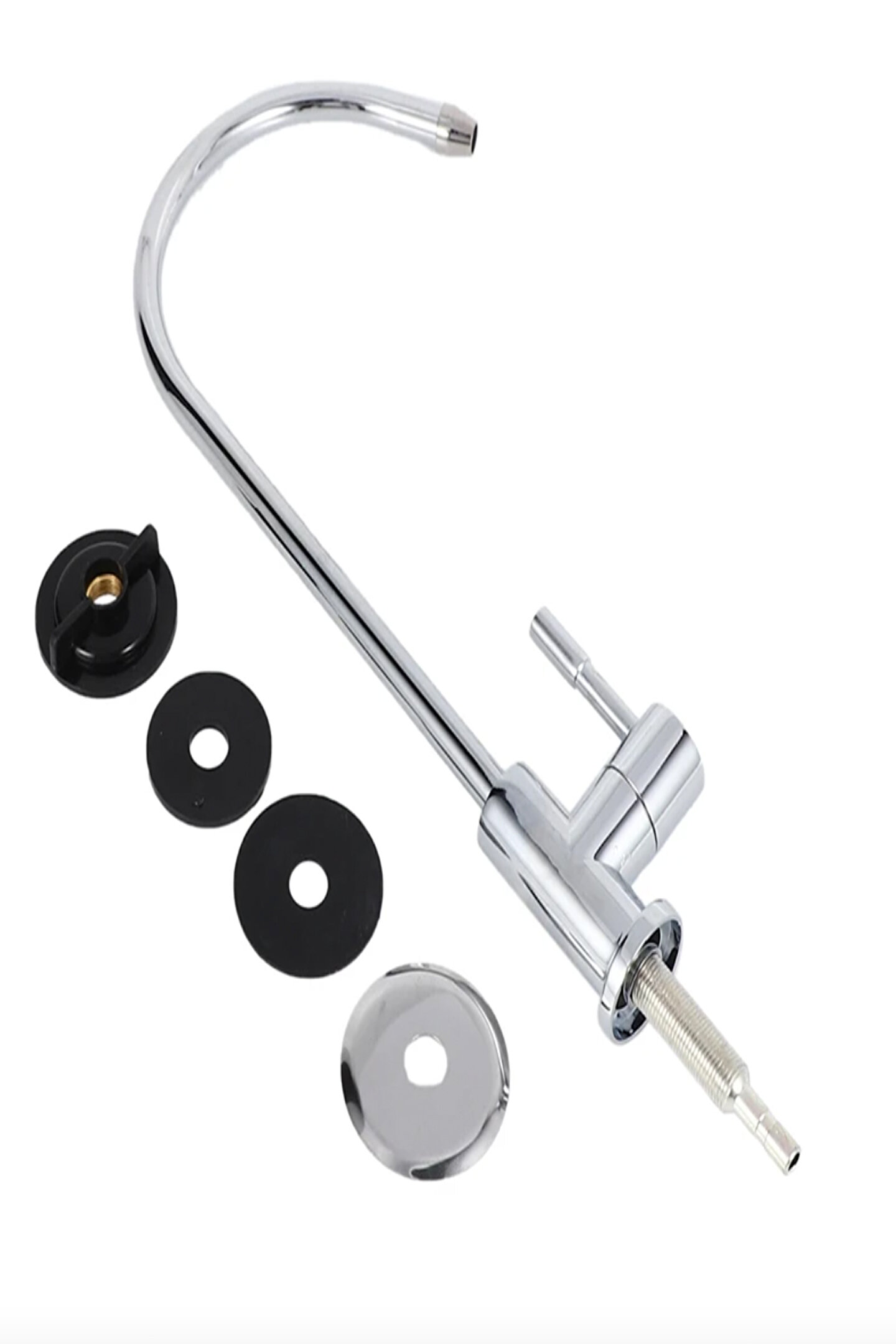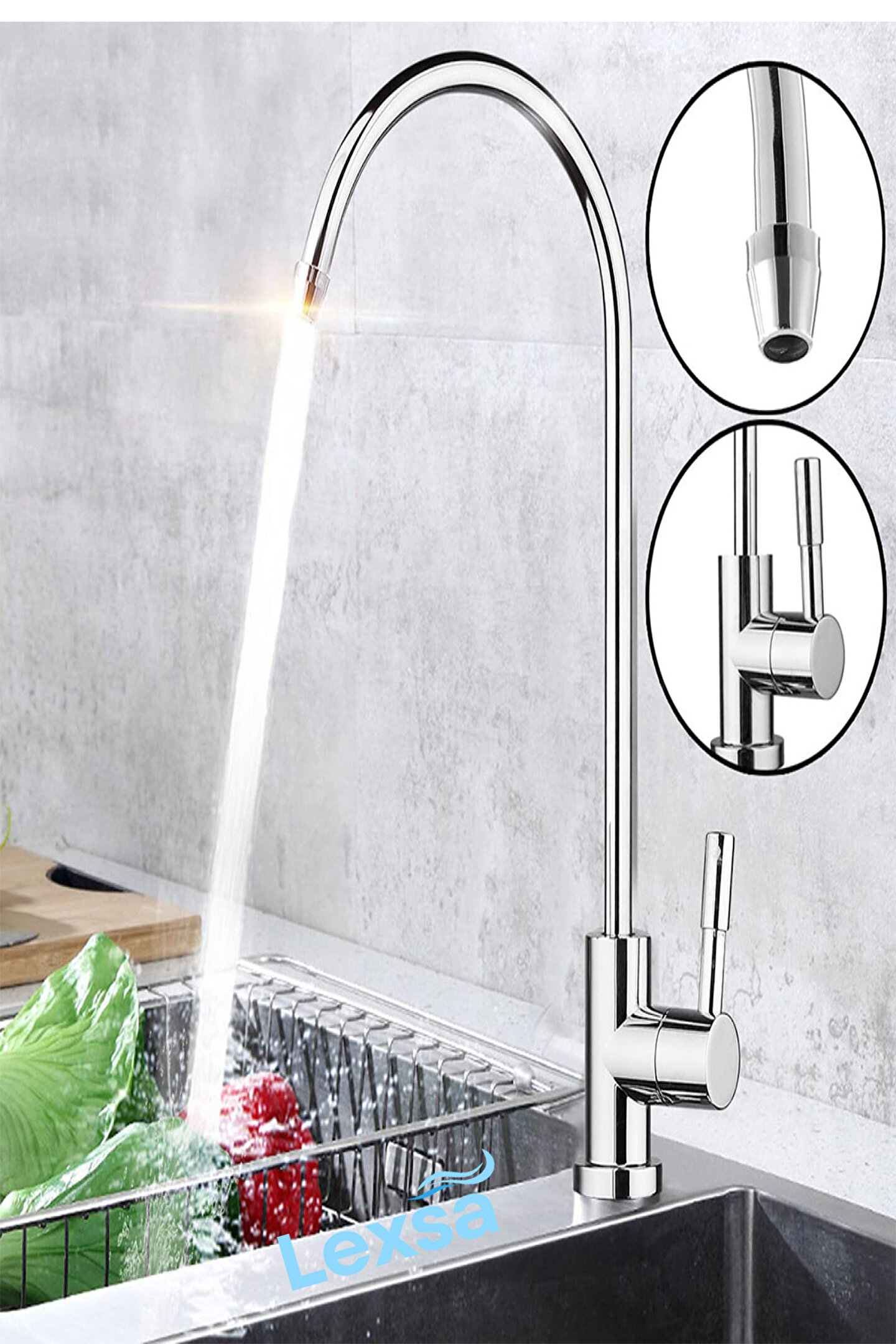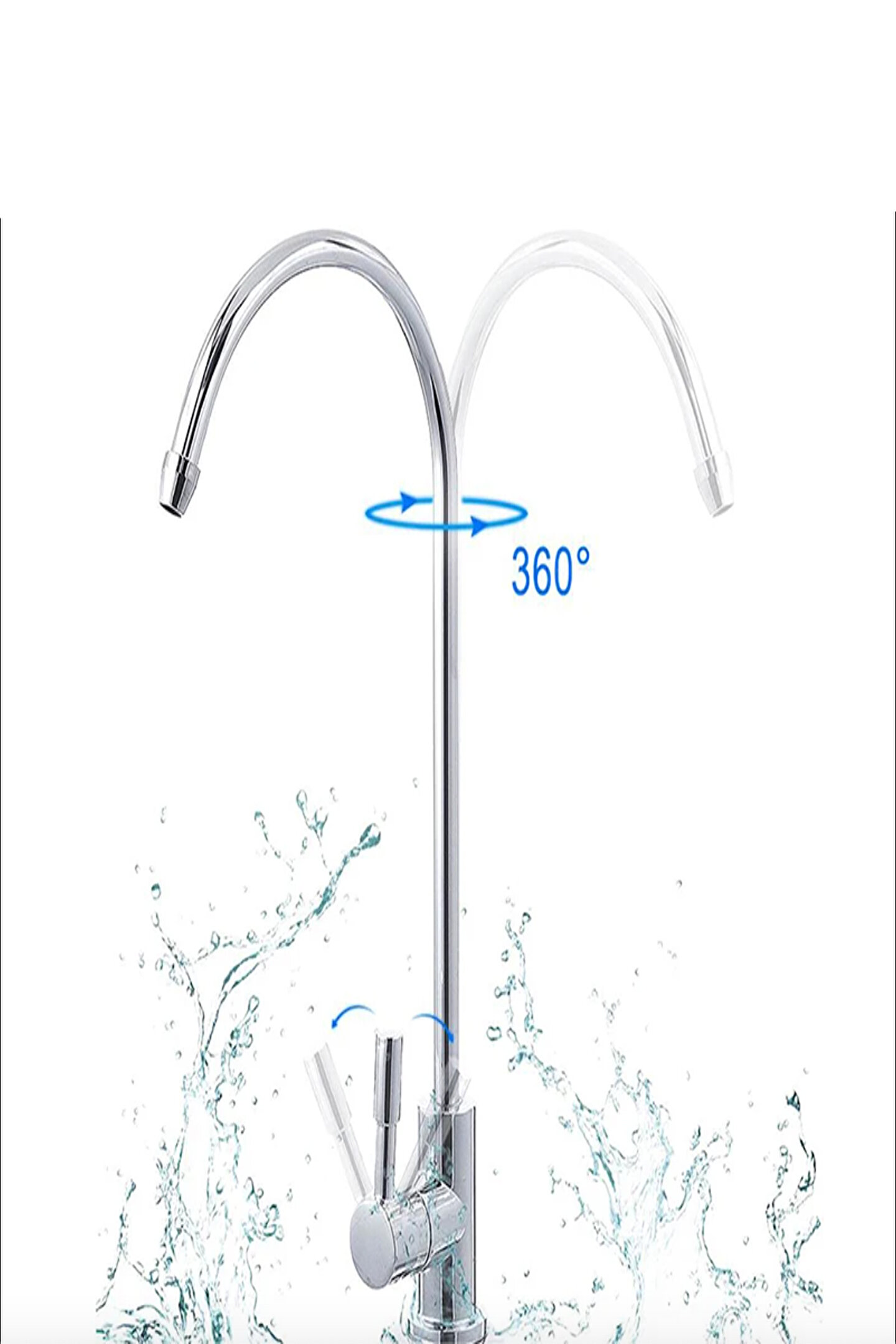 Su Arıtma Cihazı Lüx Krom Musluk (Tüm Cihazlarla Uyumludur) Su arıtma cihazlarında su almak için kullanılan, tezgâh üstüne monte edilen tek kollu deve boynu modeli pratik ve kullanışlı krom su arıtma musluğudur.; *1.Kalite Krom Musluk *Kolay Montaj İmkanı *Açık Kasa / Kapalı Kasa Cihazlarla Uyumlu *Klasik Tek Elcikli Musluk *Bağlantı Aparatları ile Gönderim *Tüm tezgah altı su arıtma cihazları ile uyumlu ;
