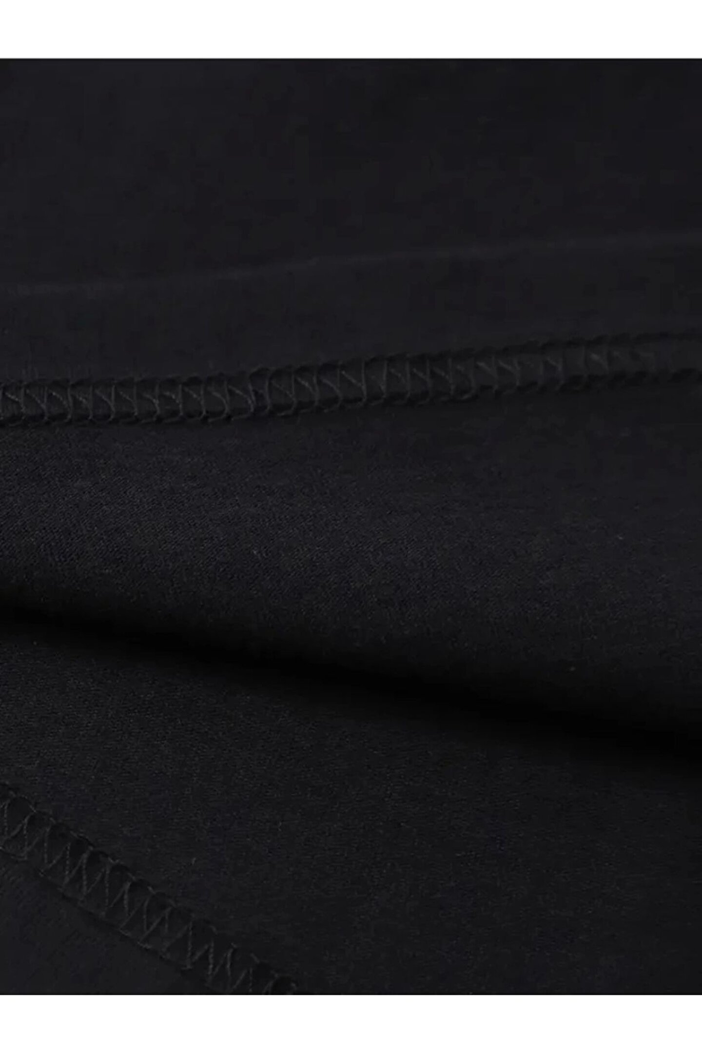 Baskılı Oversize Bisiklet Yaka T-shirt - Siyah