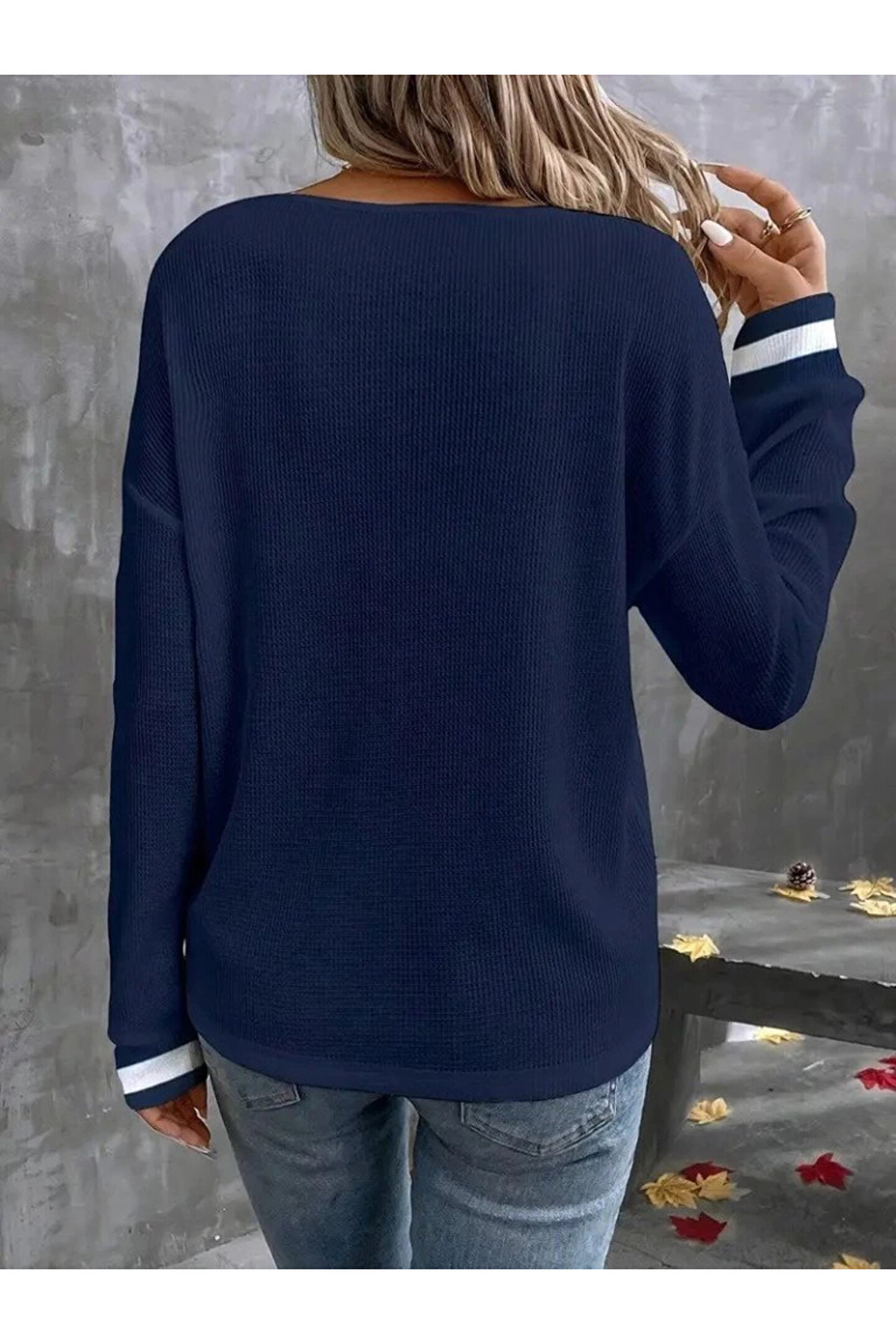 Kadın Uzun Kollu V Yakalı Waffle Bluz