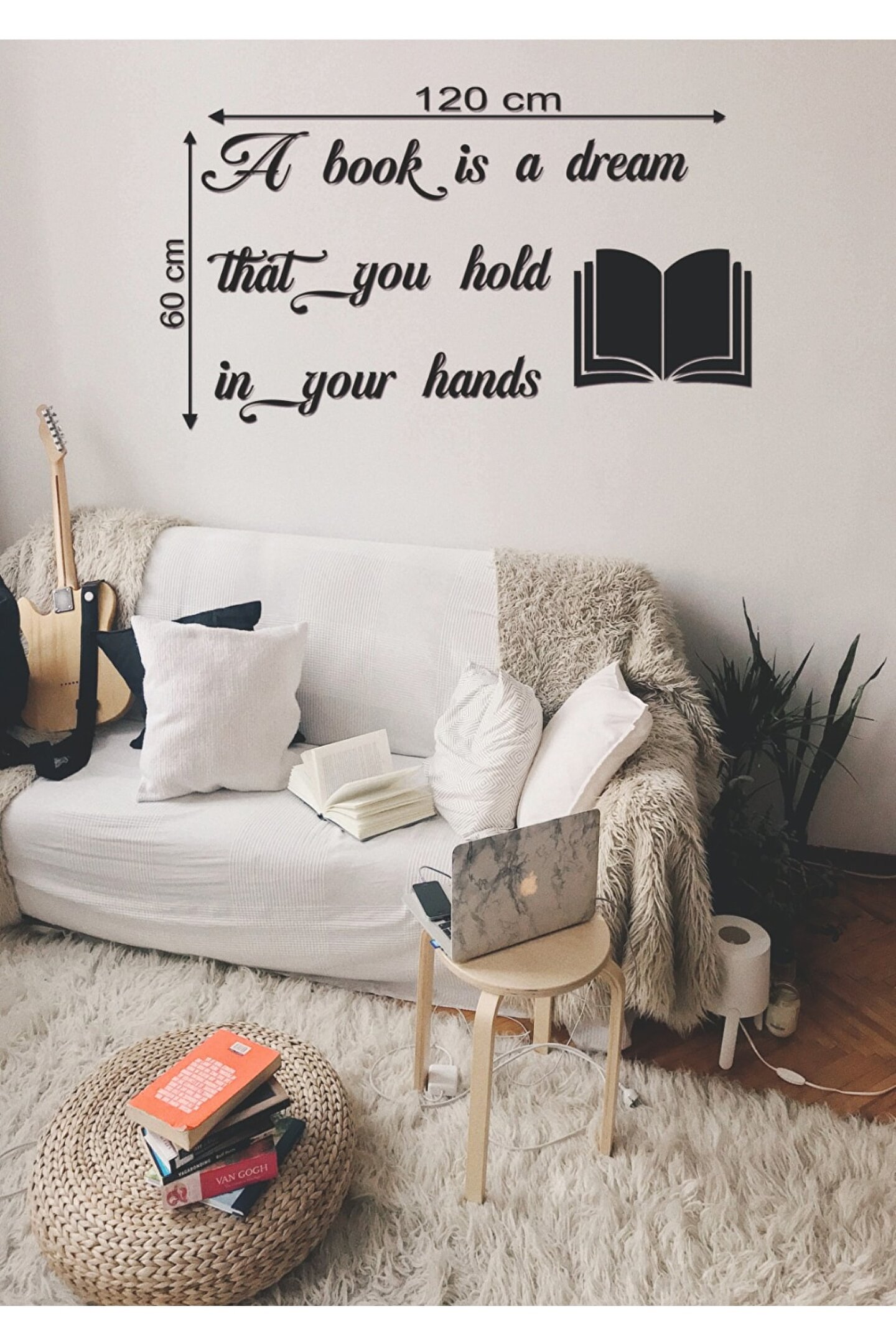 LEYLASER 120*60 Cm A Book Is A Dream That You Hold In Your Hand Ahşap Duvar Yazısı