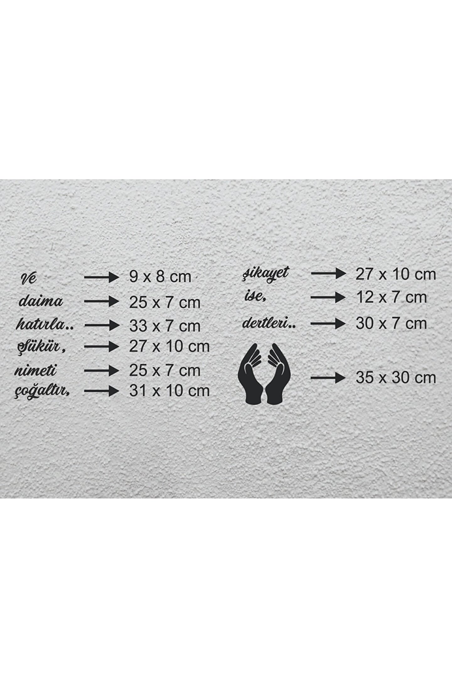 Ahşap malzeme kullanımı sayesinde uzun ömürlü ve dayanıklı bir yapıya sahiptir; 120; 80 cm boyutlarındaki geniş tasarımı ile dikkat çekici bir görünüm sunar; "Daima hatırla şükür nimeti çoğaltır şikayet ıse dertleri" yazısı, duvar dekorasyonunuza anlamlı bir mesaj katar; Ahşap duvar yazısı, mekanınıza doğal bir dokunuş ekler ve sıcak bir atmosfer yaratır;