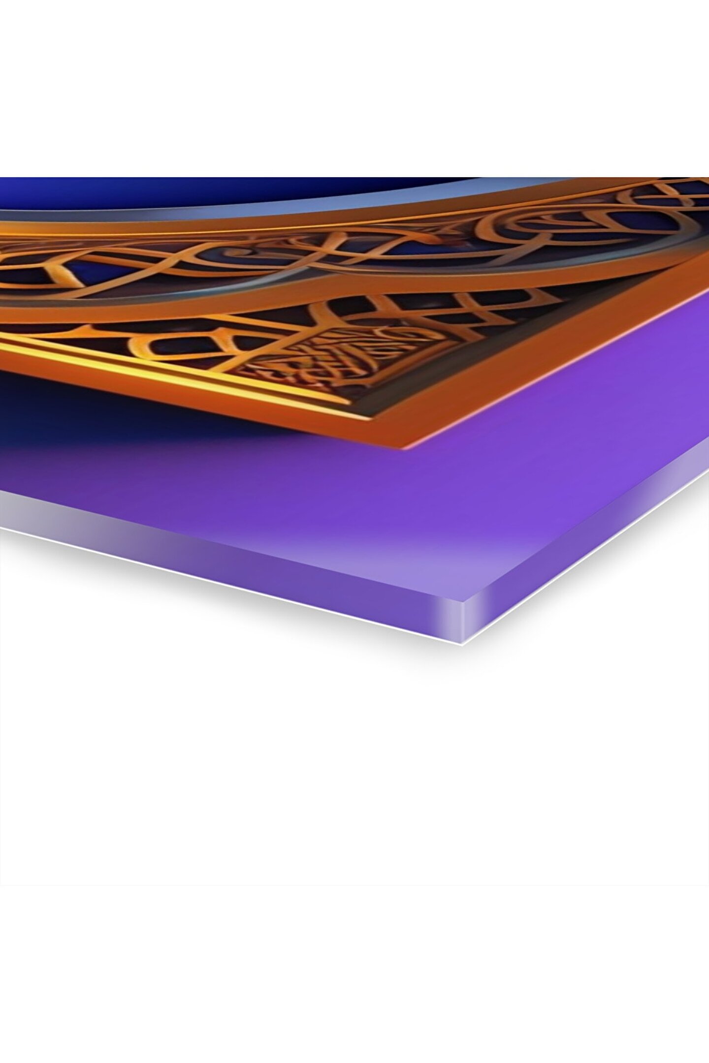 LEYLASER 3 Boyutlu Kuran-ı Kerim Altın ve Mor İslami Arapça Yazı Cam Tablo Duvar Dekoru