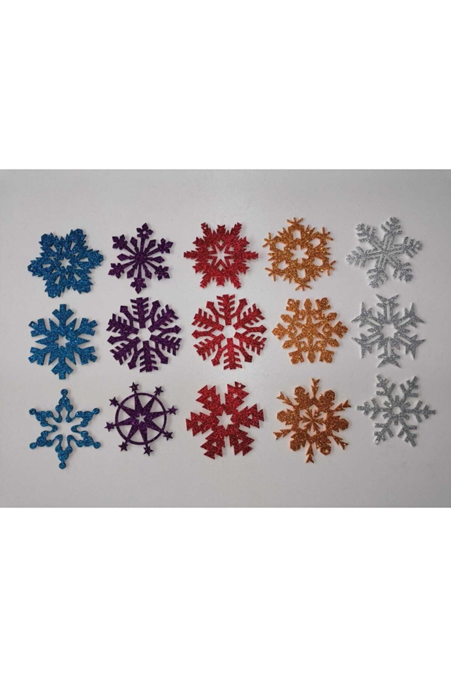 LEYLASER 5 Farklı Renkte Kar Tanesi Simli Eva Ağaç Ve Hediye Süsü 8x8cm 15 Li