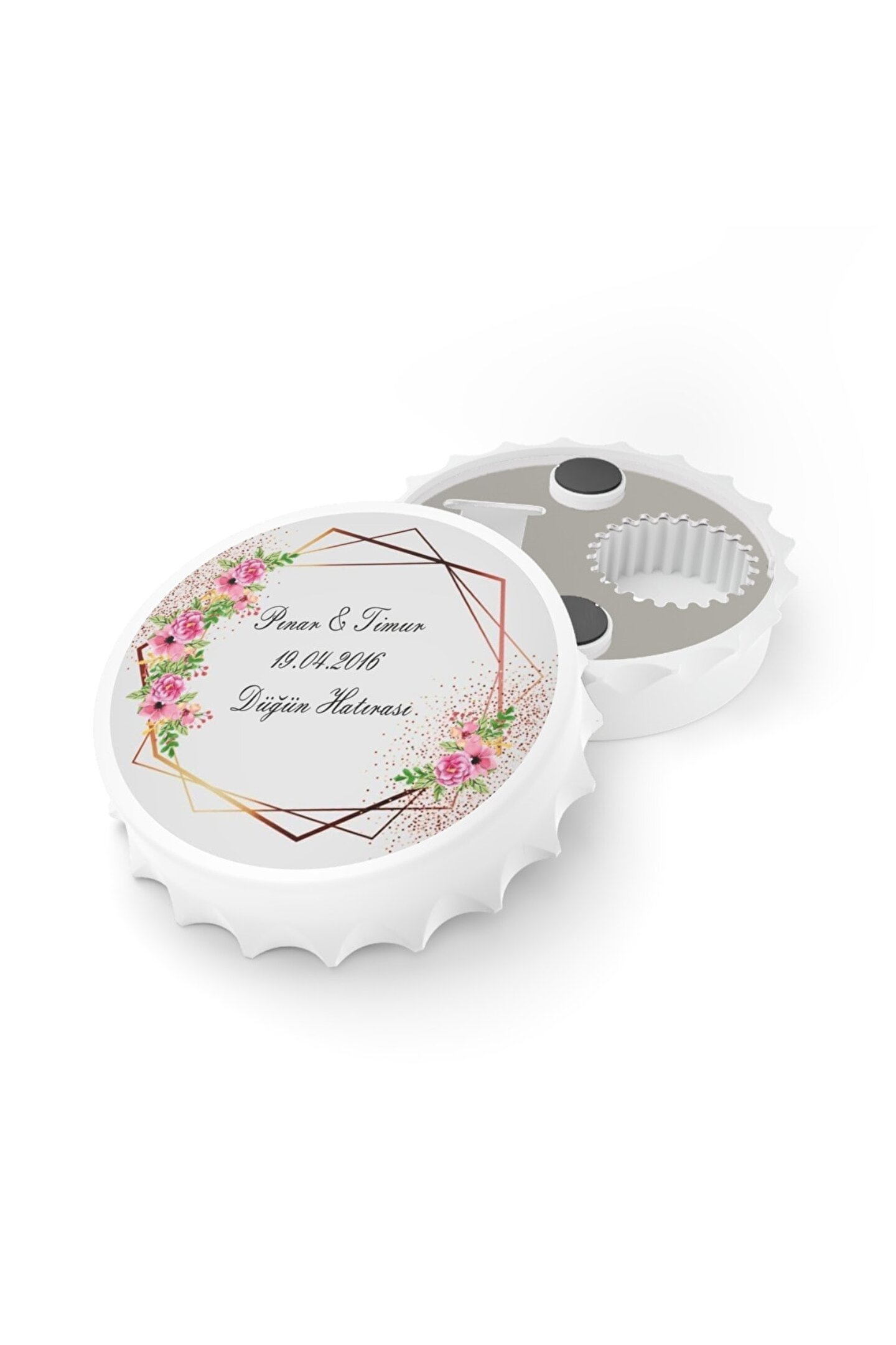 Leylaser tarafından üretilmektedir.; Kapak Açacak Magnet ürün ölçüsü 7,7 cm'dir.; Paket içerisinde 50 adet mevcuttur.; Yüksek kalitede UV baskı teknoloji ile hazırlanmaktadır. Renkler canlı ve nettir, aynı zamanda uzun ömürlüdür.; Doğum günü, Söz, Nişan, Kına, Nikah, Düğün, Doğum, Mevlüt, Diş buğdayı, Sünnet ve tüm özel günleriniz için magnetli şişe açacağı. Magnet özelliği sayesinde buzdolabı, kombi vb. gibi yerlere metal objelere yapışmaktadır.; Sipariş işleminizi tamamladıktan sonra İletişim için '' Satıcıya Soru Sor '' kısmına sipariş numaranızı ve görsel üzerine yazdırmak istediğniz bilgileri yazabilirsiniz.; Bu ilan BizimHesap.com ile yayınlanmıştır.