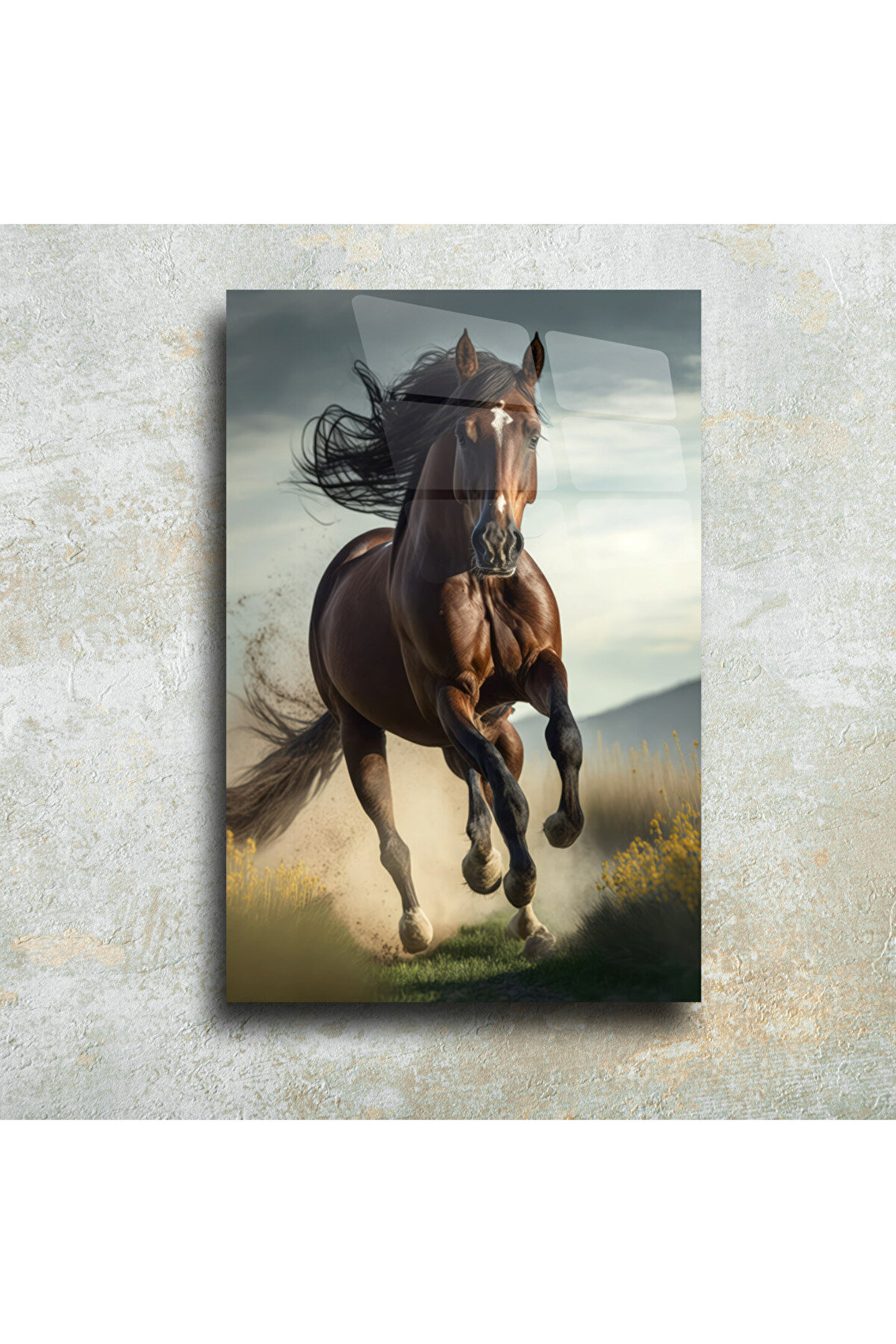 LEYLASER At Temalı Cam Tablo Duvar Dekoru 1