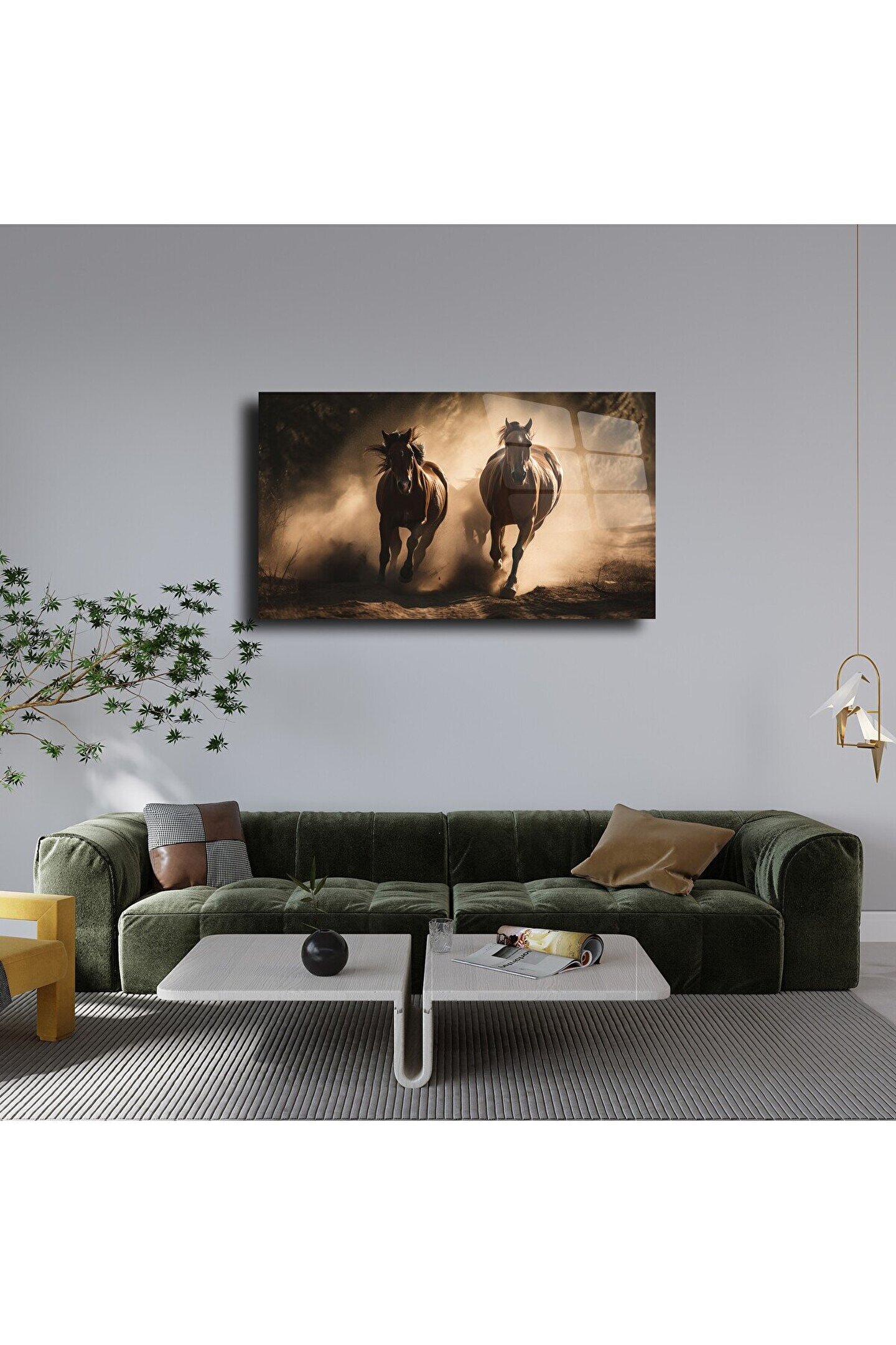 LEYLASER At Temalı Cam Tablo Duvar Dekoru 2