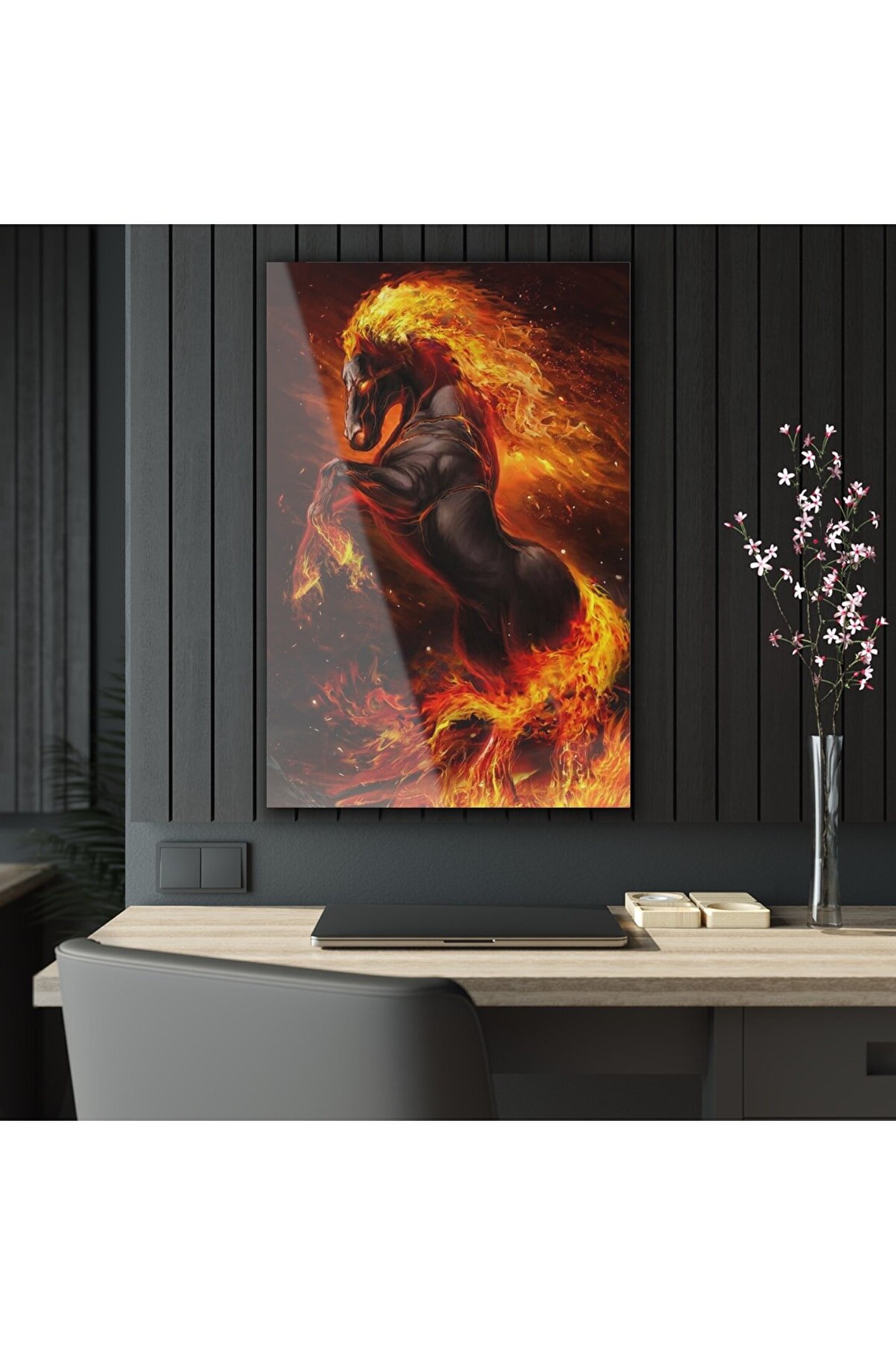 LEYLASER Ateşten At Cam Tablo Duvar Dekoru