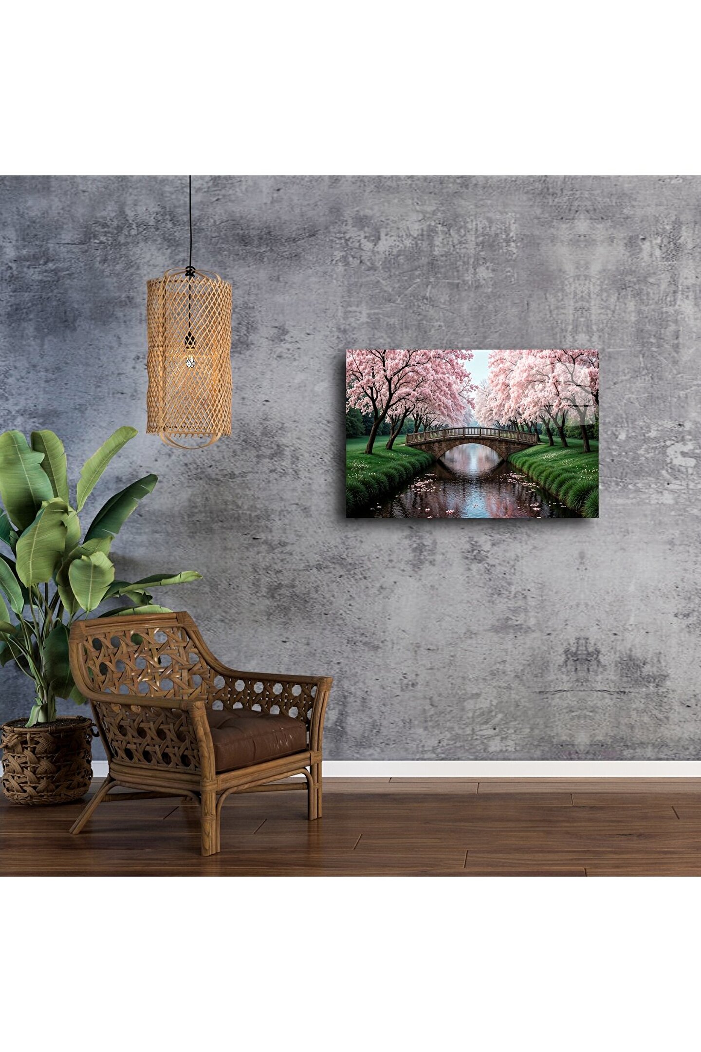 Kiraz çiçeklerinin zarif dokunuşuyla bezeli bu tablo, huzur veren bir manzaranın ve nostaljik bir köprünün büyüleyici birleşimidir. Baharın taze enerjisini evinize taşıyan bu özel fotoğraf sanatı, doğanın romantik dokusunu yakalayan pastel tonlarıyla duvarlarınızı büyüleyecek.