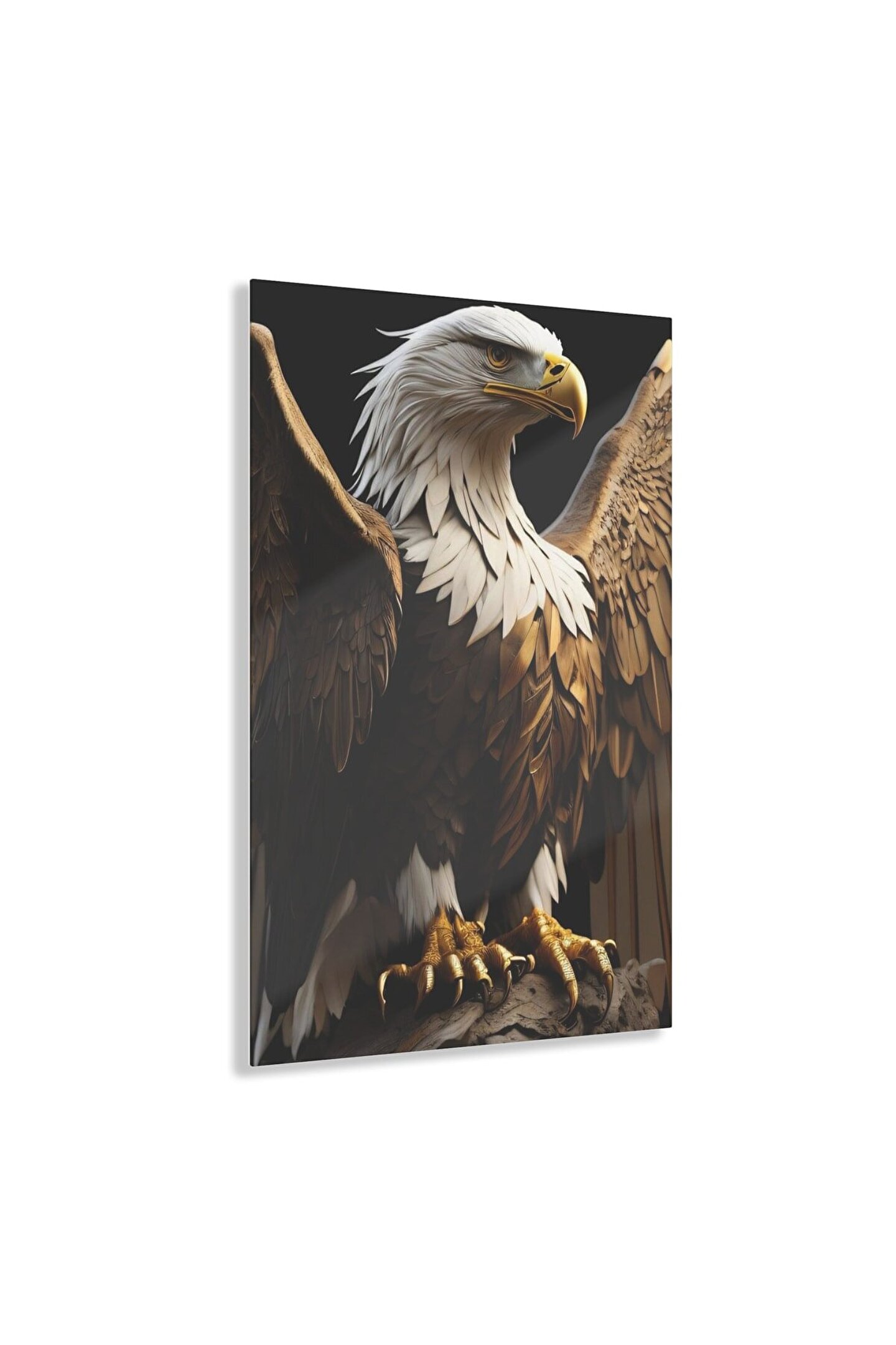 LEYLASER Beyaz Gold Renkli Kartal Cam Tablo Duvar Dekoru