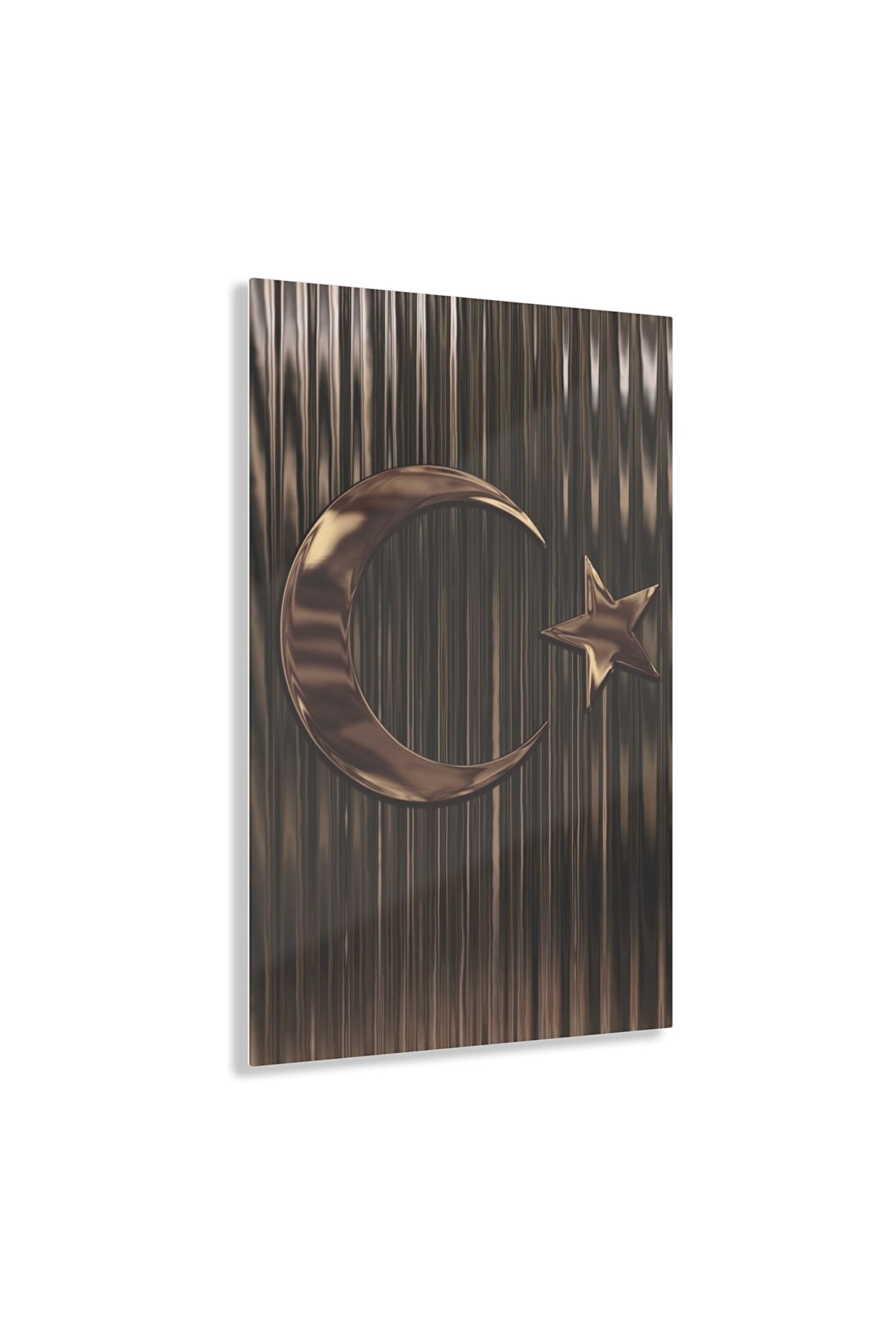 LEYLASER Bronz Türk Bayrağı Cam Tablo Duvar Dekoru