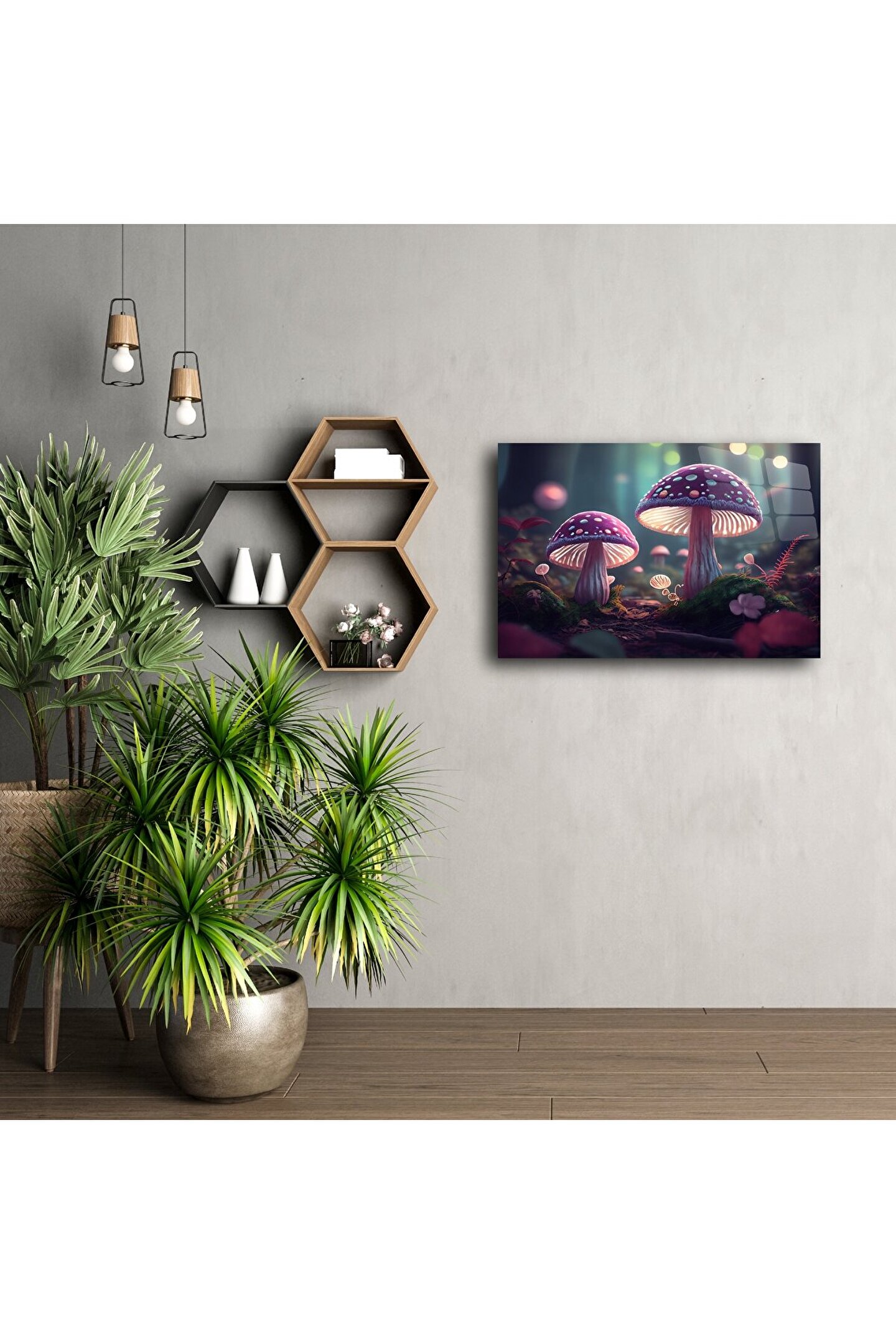 Hayal gücünü harekete geçiren bu büyülü orman mantar tablosu, fantezi severlerin kalbini fethedecek. Canlı renkler, loş orman ışıkları ve peri masalı atmosferiyle hem huzur verir hem ilham yaratır. Dijital olarak hazırlanmış bu sanat eseri, doğa tutkunları, çocuk odası dekoru arayanlar veya benzersiz bir hediye düşünenler için kusursuz bir seçim.
