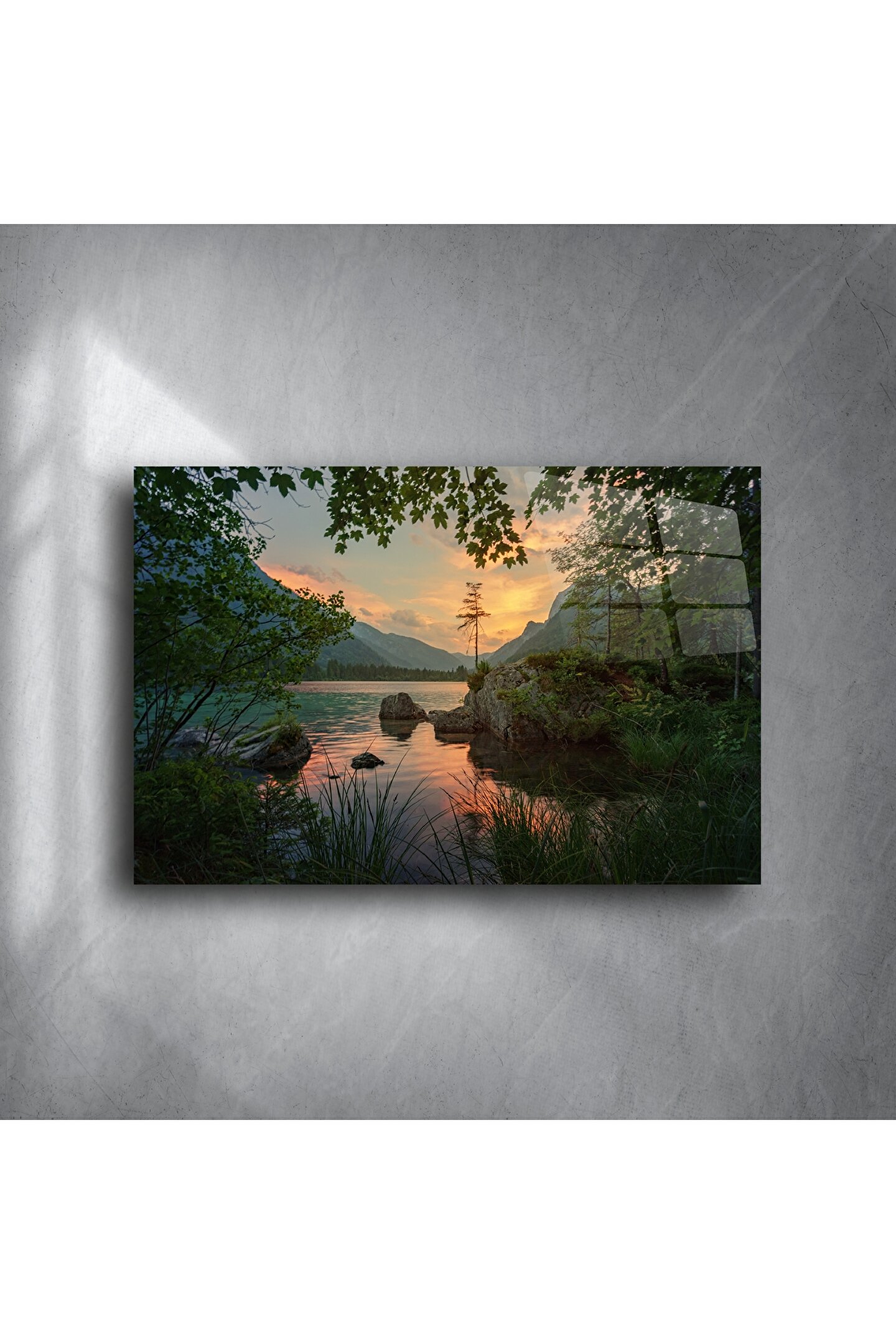 LEYLASER Cam Duvar Sanatı Gün Batımı Göl Manzarası